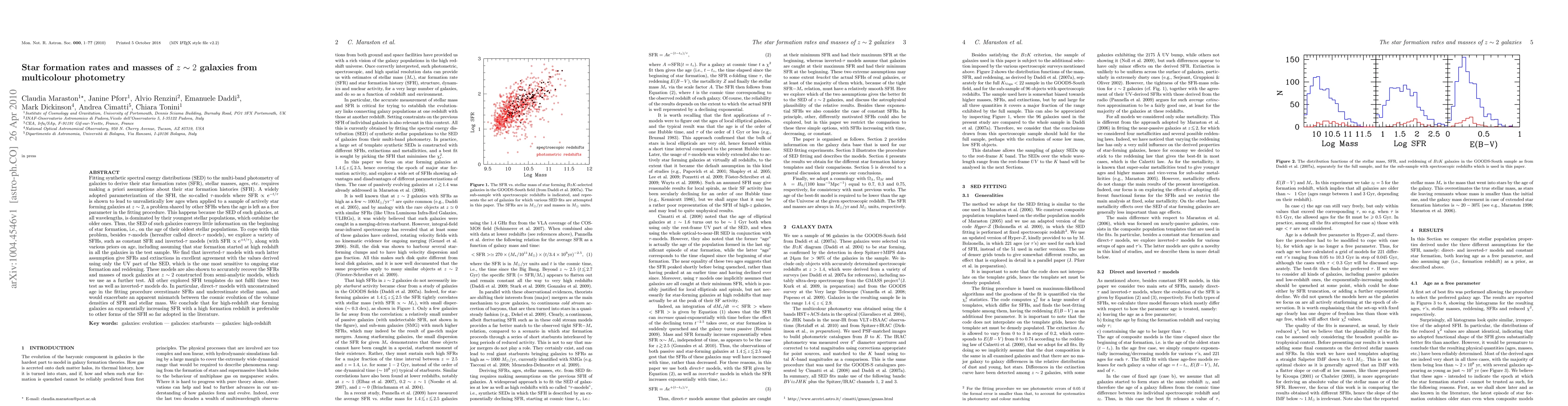 This paper investigates the star formation rates (SFR) and stellar masses of z ~ 2 galaxies using multi-band photometry, finding that traditional tau-models underestimate ages and overestimate SFRs. Inverted-tau models with high redshift star formation assumptions provide more accurate SFRs and extinctions, aligning better with UV-derived values and mock galaxy simulations.