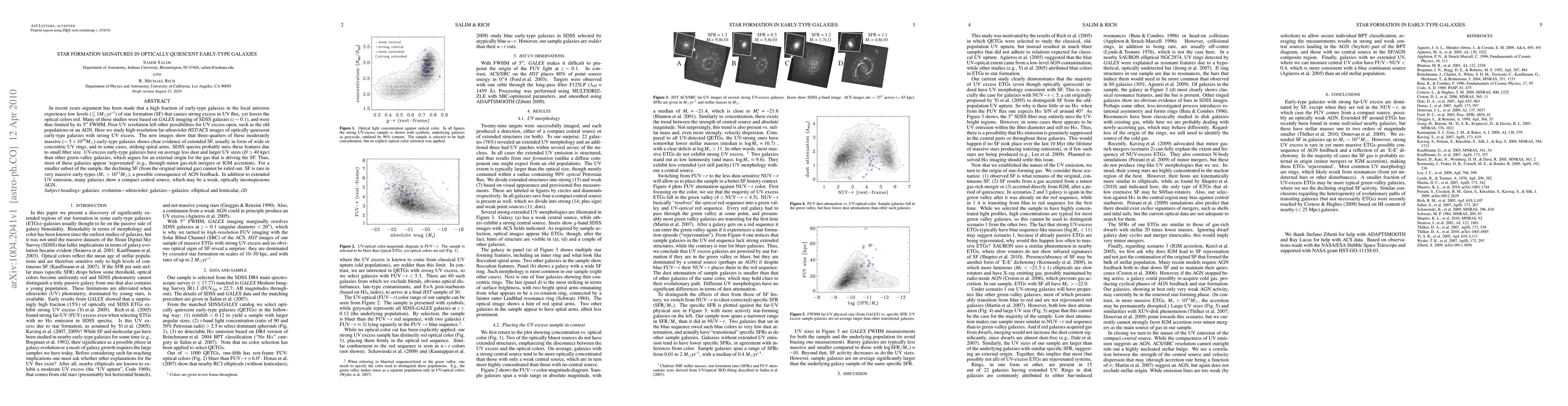 This study reveals that many early-type galaxies with strong UV excess show signs of ongoing star formation, often in the form of UV rings or spiral arms, suggesting rejuvenation through external gas sources. The presence of a compact central source indicates potential weak AGN activity.