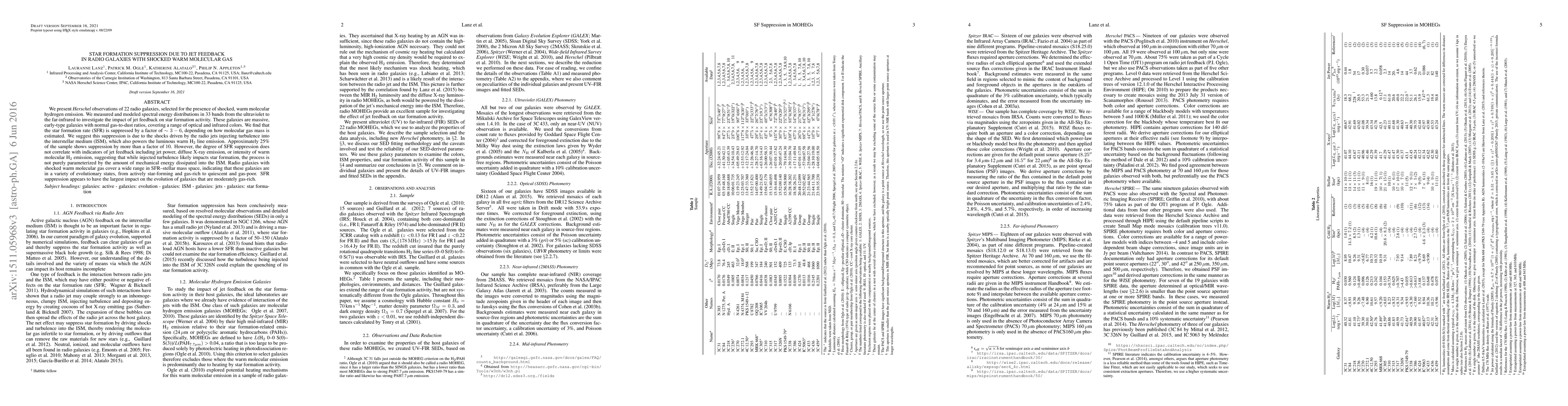 We present Herschel observations of 22 radio galaxies, selected for the presence of shocked, warm molecular hydrogen emission. We measured and modeled spectral energy distributions (SEDs) in 33 bands from the ultraviolet to the far-infrared to investigate the impact of jet feedback on star formation activity. These galaxies are massive, early-type galaxies with normal gas-to-dust ratios, covering a range of optical and infrared colors. We find that the star formation rate (SFR) is suppressed by a factor of ~3-6, depending on how molecular gas mass is estimated. We suggest this suppression is due to the shocks driven by the radio jets injecting turbulence into the interstellar medium (ISM), which also powers the luminous warm H2 line emission. Approximately 25% of the sample shows suppression by more than a factor of 10. However, the degree of SFR suppression does not correlate with indicators of jet feedback including jet power, diffuse X-ray emission, or intensity of warm molecular H2 emission, suggesting that while injected turbulence likely impacts star formation, the process is not purely parameterized by the amount of mechanical energy dissipated into the ISM. Radio galaxies with shocked warm molecular gas cover a wide range in SFR-stellar mass space, indicating that these galaxies are in a variety of evolutionary states, from actively star-forming and gas-rich to quiescent and gas-poor. SFR suppression appears to have the largest impact on the evolution of galaxies that are moderately gas-rich.