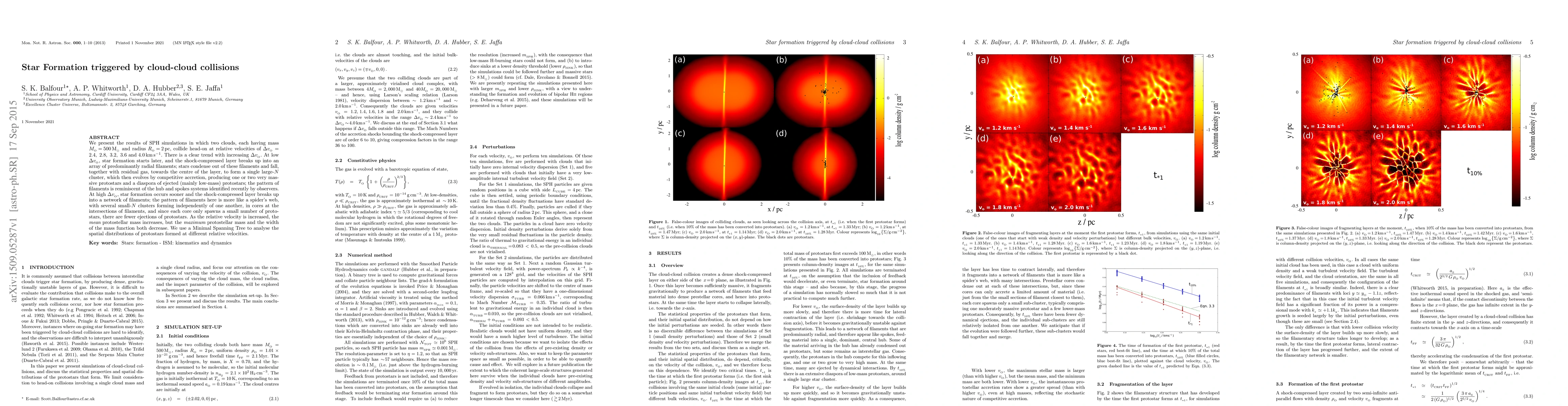 Simulations show that cloud-cloud collisions can trigger star formation at different speeds, leading to varying numbers of massive protostars and dispersed low-mass stars.