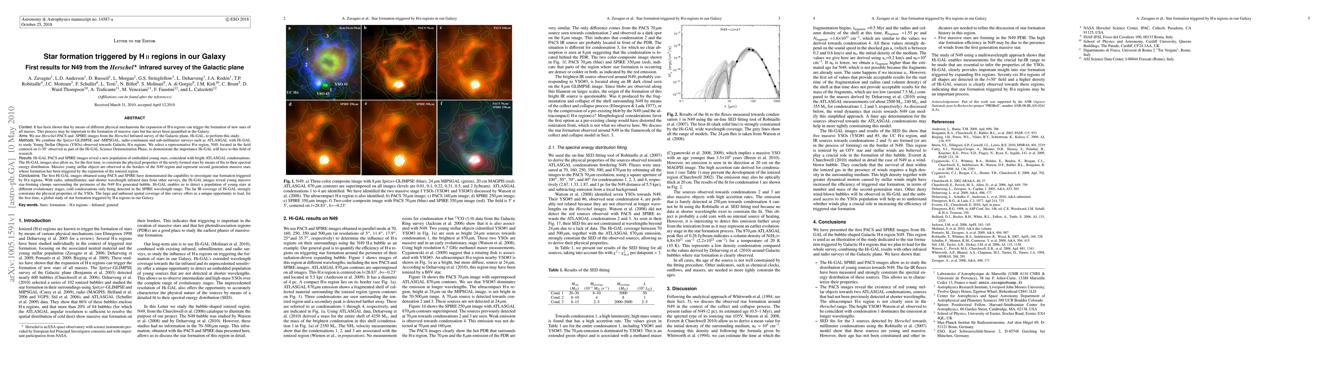 It has been shown that by means of different physical mechanisms the expansion of HII regions can trigger the formation of new stars of all masses. This process may be important to the formation of massive stars but has never been quantified in the Galaxy. We use Herschel-PACS and -SPIRE images from the Herschel Infrared survey of the Galactic plane, Hi-GAL, to perform this study. We combine the Spitzer-GLIMPSE and -MIPSGAL, radio-continuum and sub-millimeter surveys such as ATLASGAL with Hi-GAL to study Young Stellar Objects (YSOs) observed towards Galactic HII regions. We select a representative HII region, N49, located in the field centered on l=30 degr observed as part of the Hi-GAL Science Demonstration Phase, to demonstrate the importance Hi-GAL will have to this field of research. Hi-GAL PACS and SPIRE images reveal a new population of embedded young stars, coincident with bright ATLASGAL condensations. The Hi-GAL images also allow us, for the first time, to constrain the physical properties of the newly formed stars by means of fits to their spectral energy distribution. Massive young stellar objects are observed at the borders of the N49 region and represent second generation massive stars whose formation has been triggered by the expansion of the ionized region. Hi-GAL enables us to detect a population of young stars at different evolutionary stages, cold condensations only being detected in the SPIRE wavelength range. The far IR coverage of Hi-GAL strongly constrains the physical properties of the YSOs. The large and unbiased spatial coverage of this survey offers us a unique opportunity to lead, for the first time, a global study of star formation triggered by HII regions in our Galaxy.