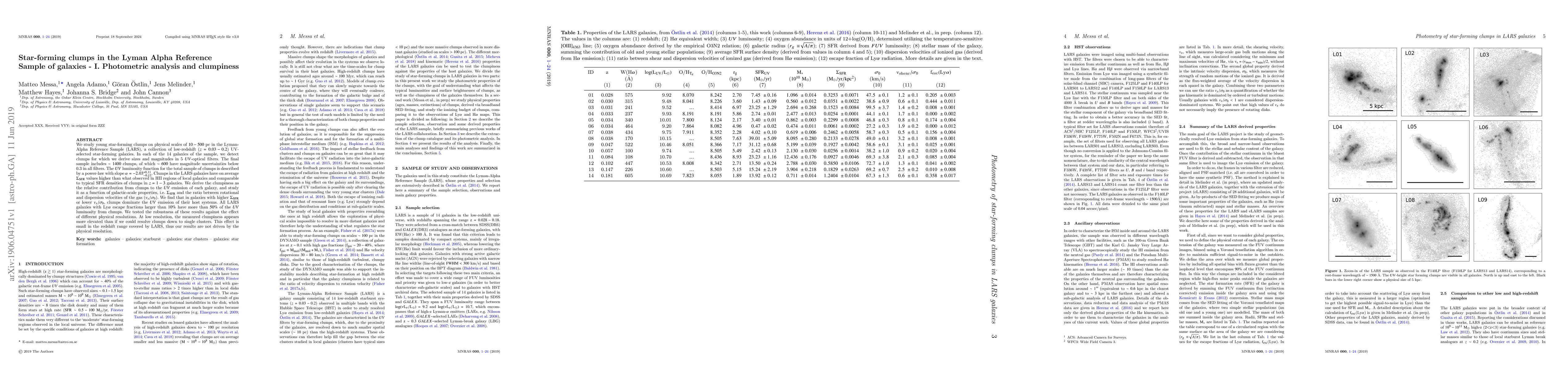 We study young star-forming clumps on physical scales of 10-500 pc in the Lyman-Alpha Reference Sample (LARS), a collection of low-redshift (z = 0.03-0.2) UV-selected star-forming galaxies. In each of the 14 galaxies of the sample, we detect clumps for which we derive sizes and magnitudes in 5 UV-optical filters. The final sample includes $\sim$1400 clumps, of which $\sim$600 have magnitude uncertainties below 0.3 in all filters. The UV luminosity function for the total sample of clumps is described by a power-law with slope $\alpha = -2.03^{+0.11}_{-0.13}$. Clumps in the LARS galaxies have on average $\Sigma_{SFR}$ values higher than what observed in HII regions of local galaxies and comparable to typical SFR densities of clumps in z = 1-3 galaxies. We derive the clumpiness as the relative contribution from clumps to the UV emission of each galaxy, and study it as a function of galactic-scale properties, i.e. $\Sigma_{SFR}$ and the ratio between rotational and dispersion velocities of the gas ($v_s/\sigma_0$). We find that in galaxies with higher $\Sigma_{SFR}$ or lower $v_s/\sigma_0$, clumps dominate the UV emission of their host systems. All LARS galaxies with Ly$\alpha$ escape fractions larger than 10% have more than 50% of the UV luminosity from clumps. We tested the robustness of these results against the effect of different physical resolutions. At low resolution, the measured clumpiness appears more elevated than if we could resolve clumps down to single clusters. This effect is small in the redshift range covered by LARS, thus our results are not driven by the physical resolution.