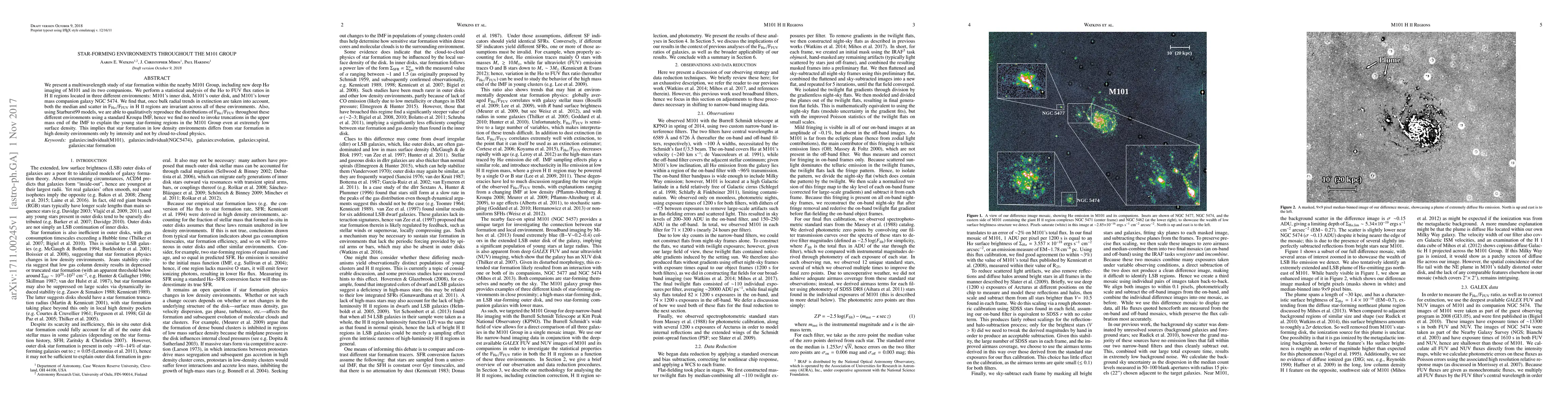 We present a multiwavelength study of star formation within the nearby M101 Group, including new deep H$\alpha$ imaging of M101 and its two companions. We perform a statistical analysis of the H$\alpha$ to FUV flux ratios in HII regions located in three different environments: M101's inner disk, M101's outer disk, and M101's lower mass companion galaxy NGC~5474. We find that, once bulk radial trends in extinction are taken into account, both the median and scatter in F$_{\rm H\alpha}/$F$_{\rm FUV}$ in HII regions are invariant across all of these environments. Also, using Starburst99 models, we are able to qualitatively reproduce the distributions of F$_{\rm H\alpha}/$F$_{\rm FUV}$ throughout these different environments using a standard Kroupa IMF, hence we find no need to invoke truncations in the upper mass end of the IMF to explain the young star-forming regions in the M101 Group even at extremely low surface density. This implies that star formation in low density environments differs from star formation in high density environments only by intensity and not by cloud-to-cloud physics.