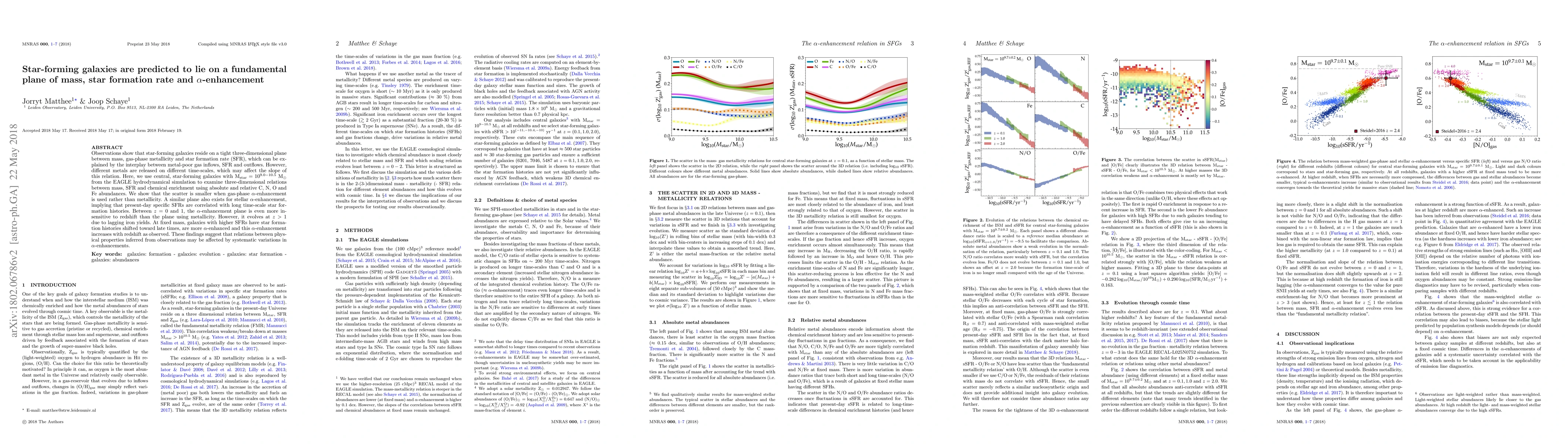 This paper demonstrates that star-forming galaxies lie on a fundamental plane defined by mass, star formation rate (SFR), and gas-phase $\alpha$-enhancement, with $\alpha$-enhancement providing a more precise relationship than overall metallicity. The study highlights the importance of $\alpha$-enhancement in understanding the evolution of galaxies over cosmic time.
