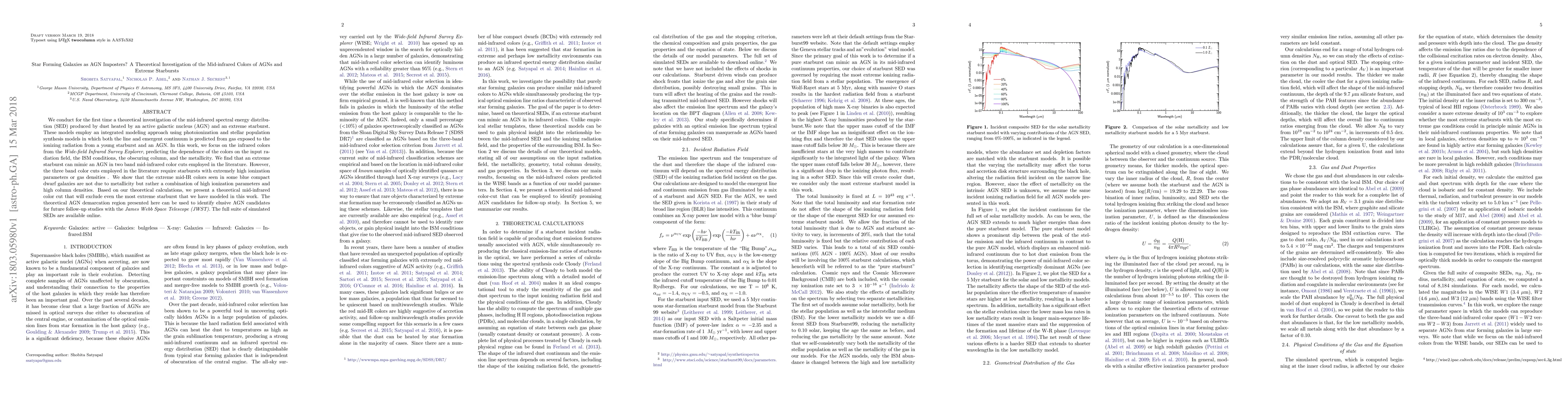 We conduct for the first time a theoretical investigation of the mid-infrared spectral energy distribution (SED) produced by dust heated by an active galactic nucleus (AGN) and an extreme starburst. These models employ an integrated modeling approach using photoionization and stellar population synthesis models in which both the line and emergent continuum is predicted from gas exposed to the ionizing radiation from a young starburst and an AGN. In this work, we focus on the infrared colors from the {\it Wide-field Infrared Survey Explorer}, predicting the dependence of the colors on the input radiation field, the ISM conditions, the obscuring column, and the metallicity. We find that an extreme starburst can mimic an AGN in two band mid-infrared color cuts employed in the literature. However, the three band color cuts employed in the literature require starbursts with extremely high ionization parameters or gas densities . We show that the extreme mid-IR colors seen in some blue compact dwarf galaxies are not due to metallicity but rather a combination of high ionization parameters and high column densities. Based on our theoretical calculations, we present a theoretical mid-infrared color cut that will exclude even the most extreme starburst that we have modeled in this work. The theoretical AGN demarcation region presented here can be used to identify elusive AGN candidates for future follow-up studies with the {\it James Webb Space Telescope (JWST)}. The full suite of simulated SEDs are available online.