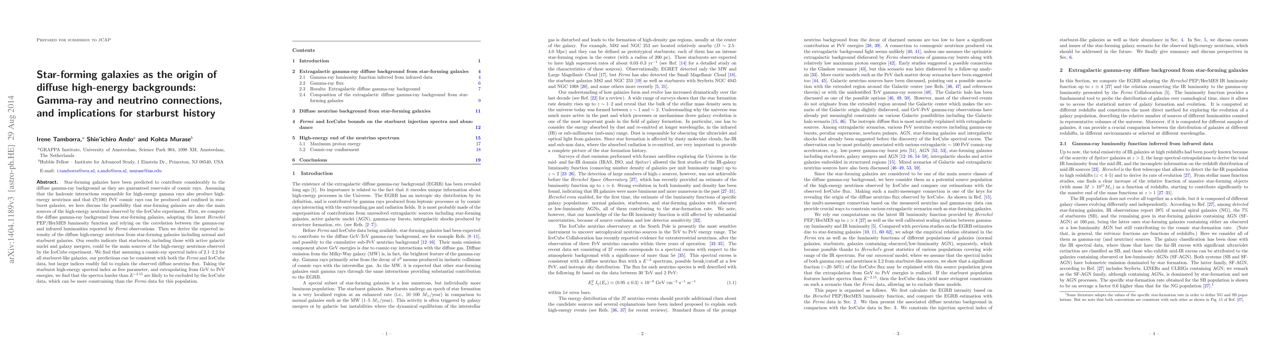 This paper investigates the contribution of star-forming galaxies, particularly starbursts, to the diffuse high-energy gamma-ray and neutrino backgrounds. It finds that starbursts, including those with active galactic nuclei and mergers, could be the primary sources of high-energy neutrinos observed by IceCube, provided the cosmic-ray spectral index is between 2.1-2.2.