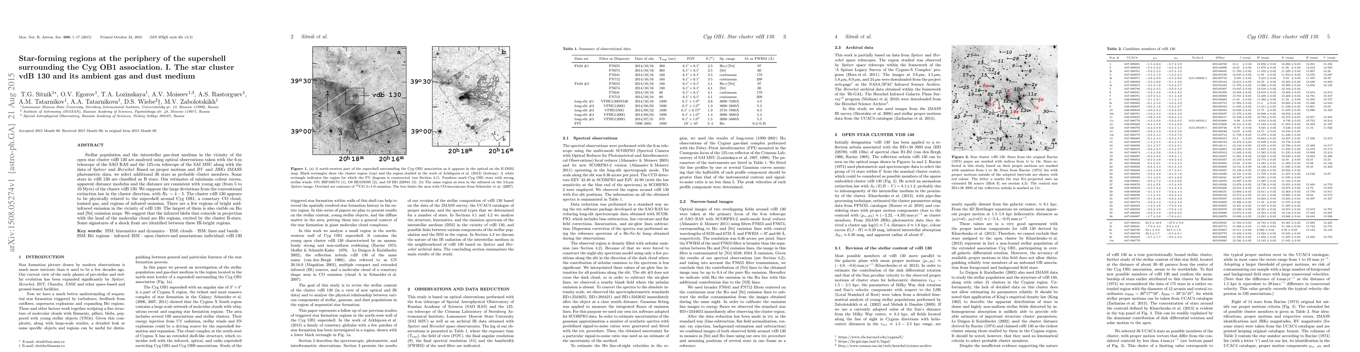 Stellar population and the interstellar gas-dust medium in the vicinity of the open star cluster vdB 130 are analysed using optical observations taken with the 6-m telescope of the SAO RAS and the 125-cm telescope of the SAI MSU along with the data of Spitzer and Herschel. Based on proper motions and BV and JHKs 2MASS photometric data, we select additional 36 stars as probable cluster members. Some stars in vdB 130 are classified as B stars. Our estimates of minimum colour excess, apparent distance modulus and the distance are consistent with young age (from 5 to 10 Myrs) of the cluster vdB 130. We suppose the large deviations from the conventional extinction law in the cluster direction, with $R_V$ ~ 4 - 5. The cluster vdB 130 appears to be physically related to the supershell around Cyg OB1, a cometary CO cloud, ionized gas, and regions of infrared emission. There are a few regions of bright mid-infrared emission in the vicinity of vdB 130. The largest of them is also visible on H-alpha and [SII] emission maps. We suggest that the infrared blobs that coincide in projection with the head of the molecular cloud are HII regions, excited by the cluster B-stars. Some signatures of a shock front are identified between these IR-bright regions.