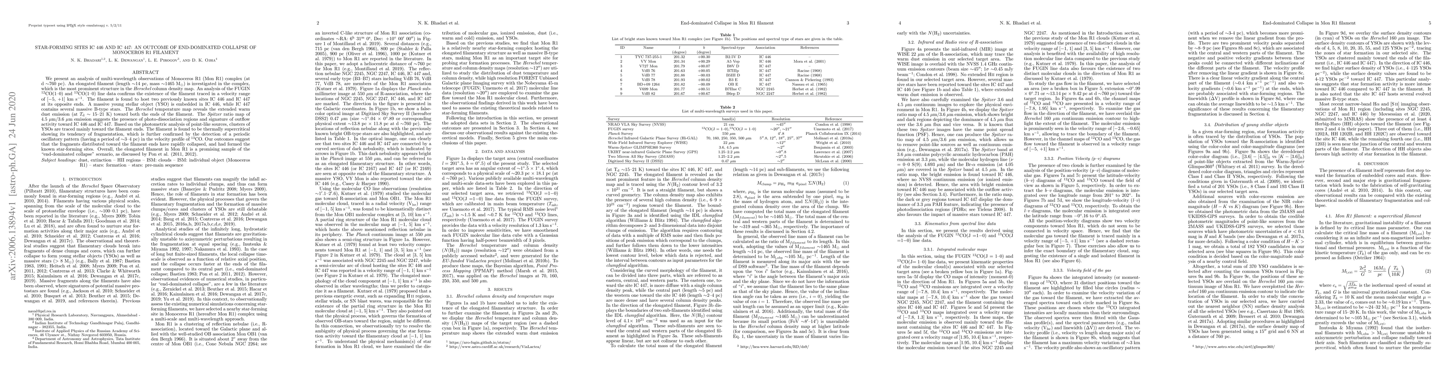 This research paper analyzes the star-forming sites IC 446 and IC 447 in a filament within the Monoceros R1 complex, revealing an end-dominated collapse scenario that led to their formation.