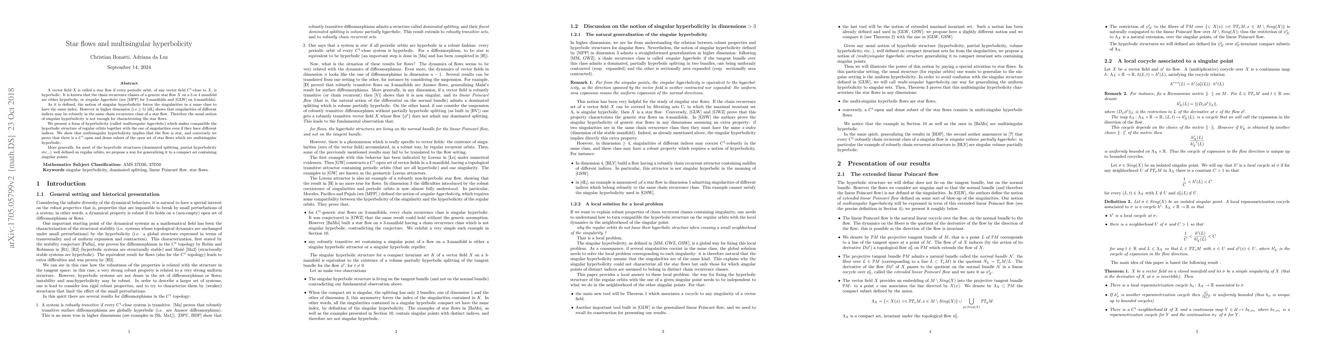 A vector field X is called a star flow if every periodic orbit, of any vector field C1-close to X, is hyperbolic. It is known that the chain recurrence classes of a generic star flow X on a 3 or 4 manifold are either hyperbolic or singular hyperbolic (see [MPP] for 3-manifolds and [GLW] on 4-manifolds). As it is defined, the notion of singular hyperbolicity forces the singularities in the same class to have the same index. However, in higher dimension (i.e $\geq 5$) \cite{BdL} shows that singularities of different indices may be robustly in the same chain recurrence class of a star flow. Therefore the usual notion of singular hyperbolicity is not enough for characterizing the star flows. We present a form of hyperbolicity (called multi-singular hyperbolic) which makes compatible the hyperbolic structure of regular orbits together with the one of singularities even if they have different indices. We show that multisingular hyperbolicity implies that the flow is star, and conversely, there is a C1-open and dense subset of the an open set of star flows which are multisingular hyperbolic. More generally, for most of the hyperbolic structures (dominated splitting, partial hyperbolicity etc...) well defined on regular orbits, we propose a way for generalizing it to a compact set containing singular points.