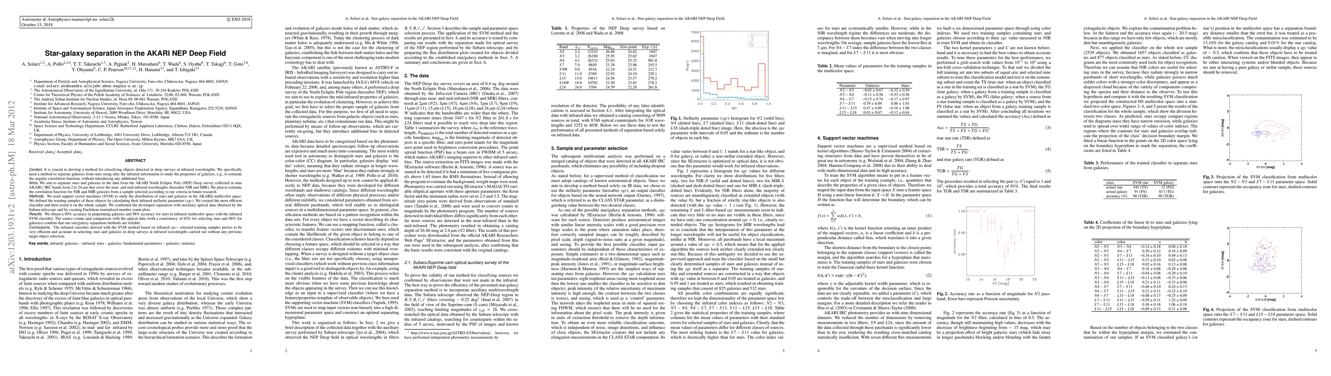 The paper presents a method using support vector machines (SVM) to accurately separate stars from galaxies in the AKARI NEP Deep Field survey based on infrared data, achieving 90% accuracy for galaxies and 98% for stars. The method's reliability is confirmed by comparing results with optical data from the Subaru telescope.