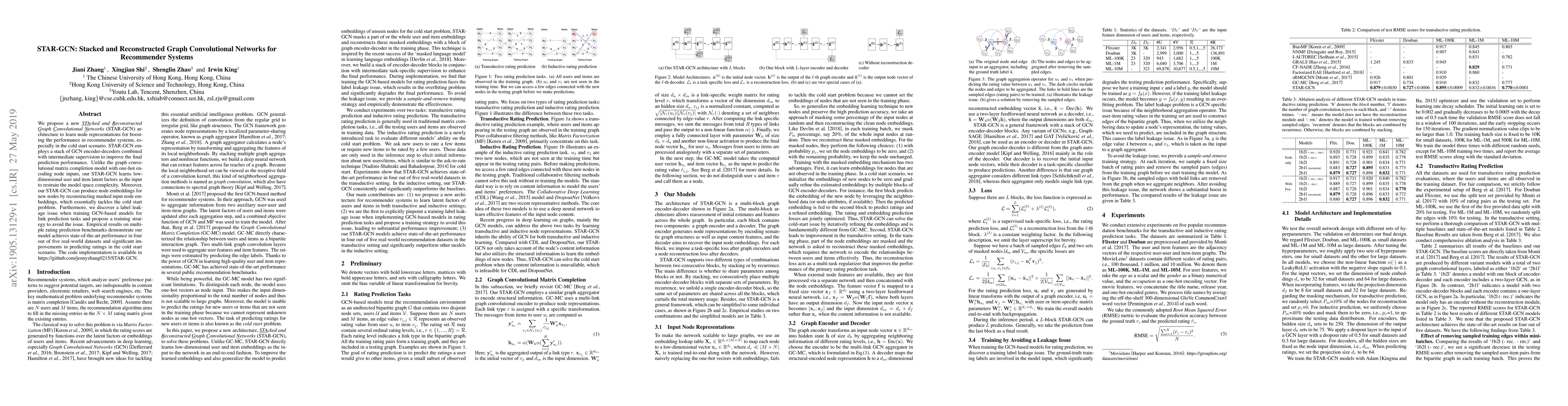 The STAR-GCN architecture enhances recommender systems by stacking and reconstructing graph convolutional networks to tackle cold start issues, achieving state-of-the-art performance on multiple benchmarks. It mitigates label leakage in GCN training and effectively learns low-dimensional latent factors for new nodes.