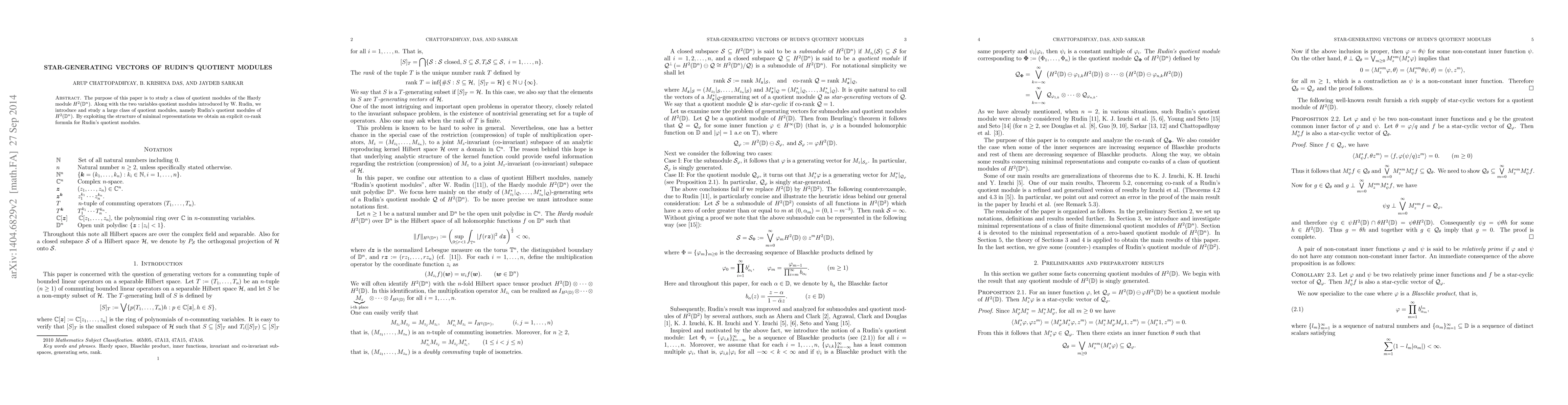 This paper explores a class of quotient modules derived from the Hardy module $H^2(D^n)$, extending Rudin's two-variable quotient modules. It provides an explicit co-rank formula for these modules using minimal representation structures.