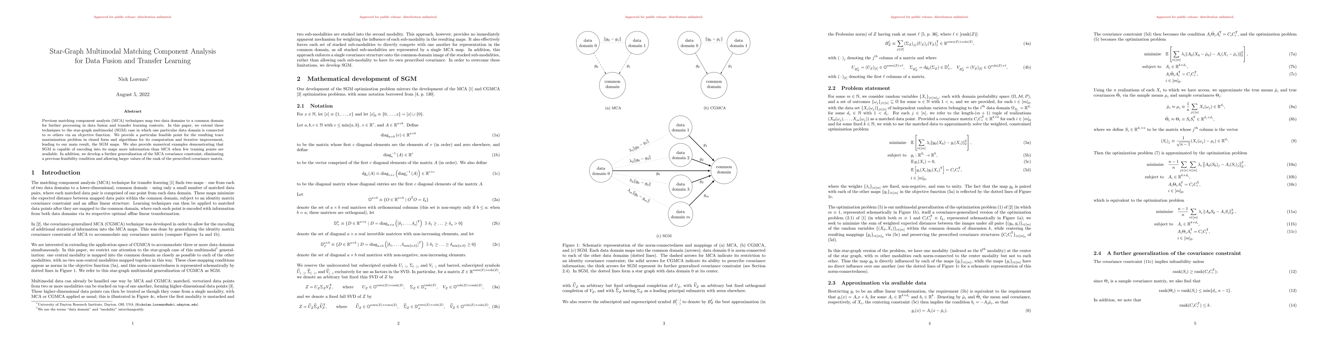 This paper introduces star-graph multimodal matching component analysis (SGM) for data fusion and transfer learning, providing closed-form solutions and algorithms for its computation. It demonstrates that SGM encodes more information than traditional MCA, especially with limited training data, and generalizes the MCA covariance constraint.