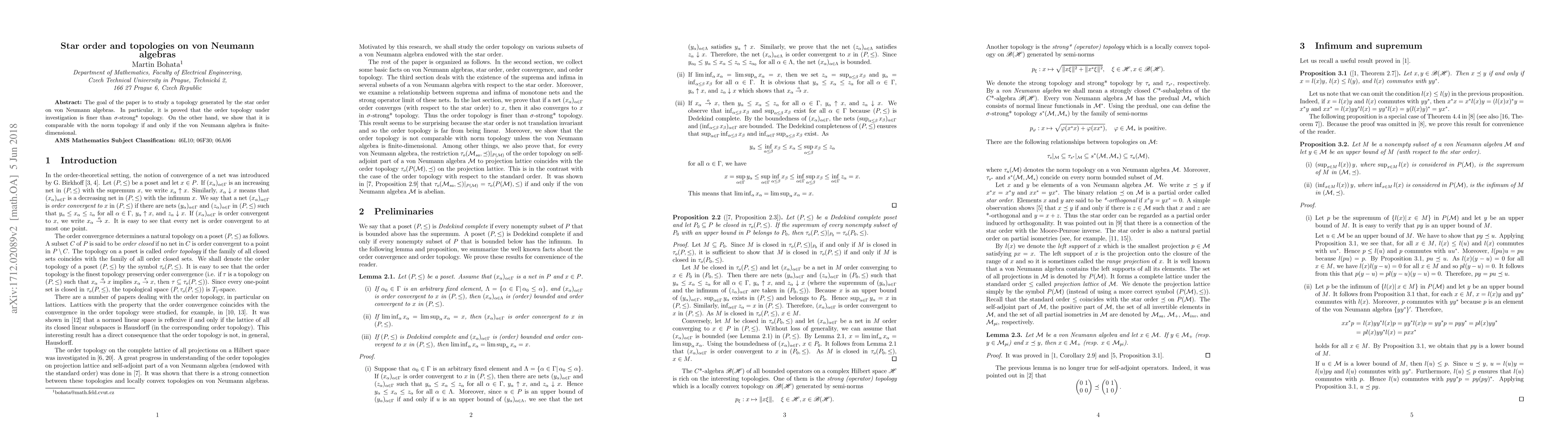 A study on a topology generated by star order on von Neumann algebras reveals that this order topology is finer than the $ heta$-strong* topology but comparable to the norm topology only in finite-dimensional cases.