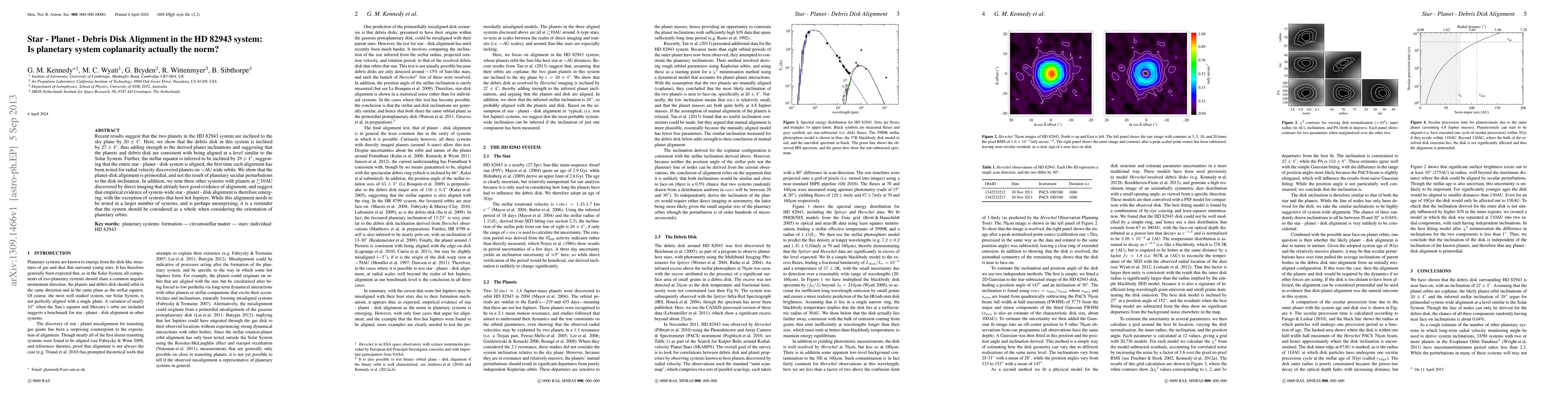 This study finds that the HD 82943 system's planets, debris disk, and stellar equator are coplanar, suggesting alignment similar to the Solar System. The alignment is primordial, not caused by planetary perturbations, and hints at a broader trend of coplanarity in extrasolar systems beyond hot Jupiters.
