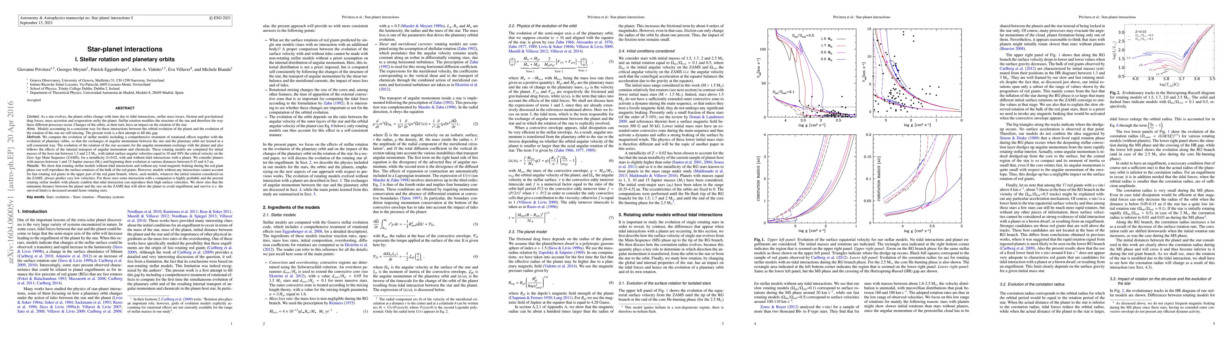 This paper investigates the mutual influence of stellar rotation and planetary orbits during a star's evolution, finding that tidal interactions can reproduce the high surface velocities of fast rotating red giants. It concludes that faster rotating stars require closer initial planet distances to avoid engulfment.
