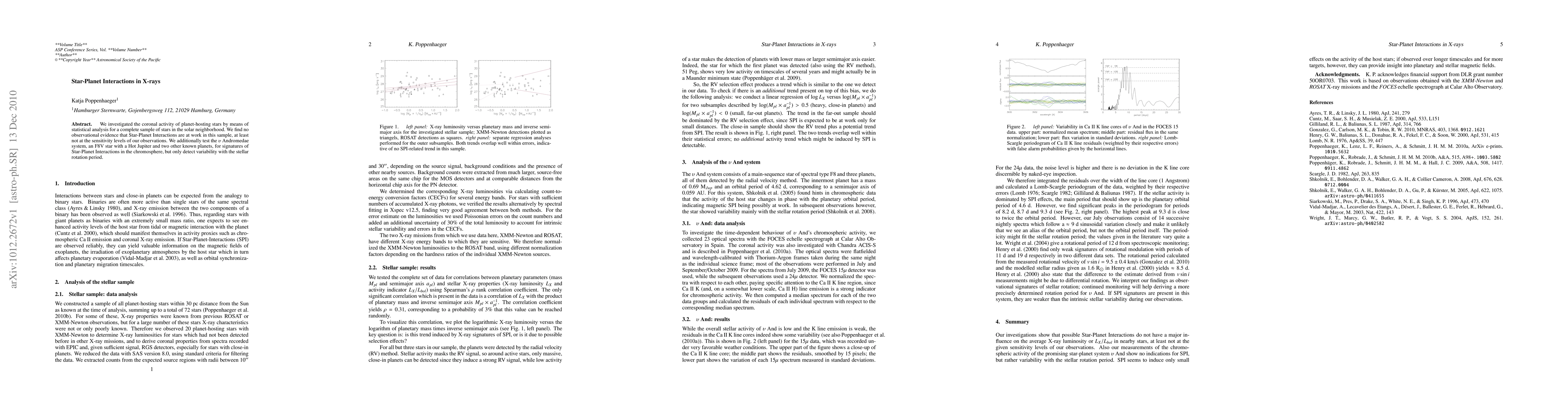 We investigated the coronal activity of planet-hosting stars by means of statistical analysis for a complete sample of stars in the solar neighborhood. We find no observational evidence that Star-Planet Interactions are at work in this sample, at least not at the sensitivity levels of our observations. We additionally test the upsilon Andromedae system, an F8V star with a Hot Jupiter and two other known planets, for signatures of Star-Planet Interactions in the chromosphere, but only detect variability with the stellar rotation period.