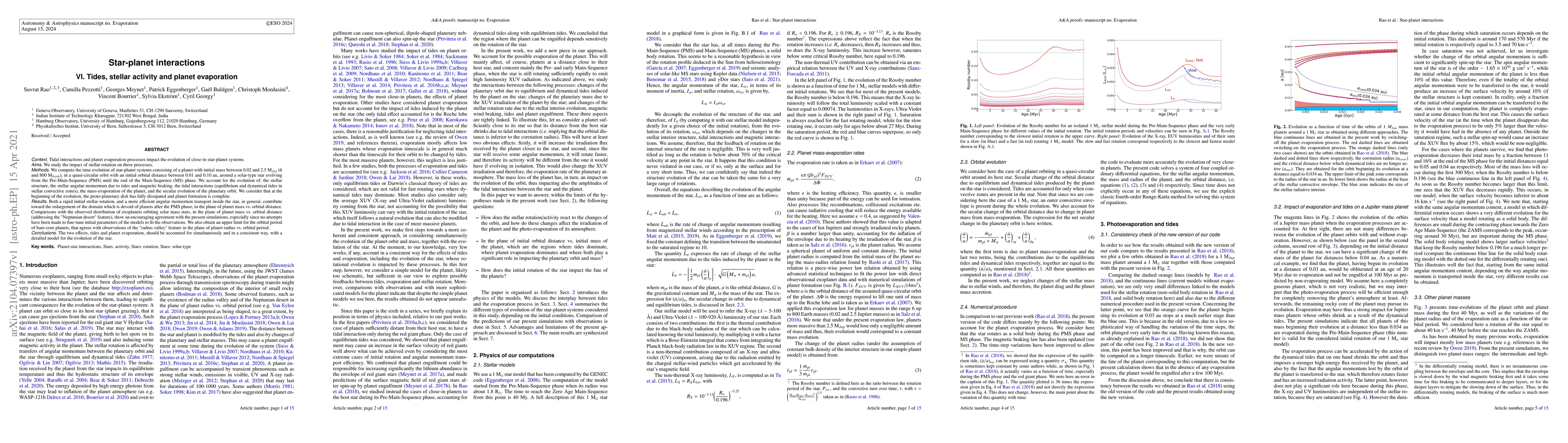 This paper investigates the impact of stellar rotation on tidal interactions and planet evaporation in close-in star-planet systems. The study shows that rapid initial stellar rotation and efficient angular momentum transport enlarge the domain devoid of planets, aligning well with observed exoplanet distributions and features like the "Neptunian desert."