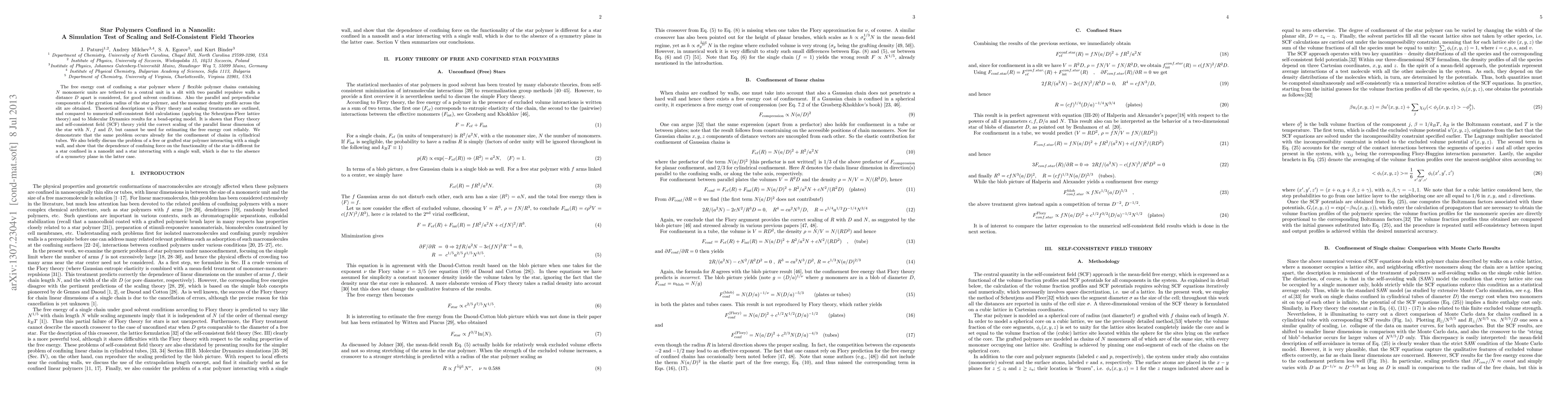 This paper investigates the free energy cost of star polymer confinement in a nanoslit, comparing theoretical predictions from Flory theory and scaling treatments with numerical self-consistent field calculations and Molecular Dynamics. It finds that while these theories correctly scale the star polymer's dimensions, they fail to reliably estimate the free energy cost, highlighting discrepancies in confinement scenarios.