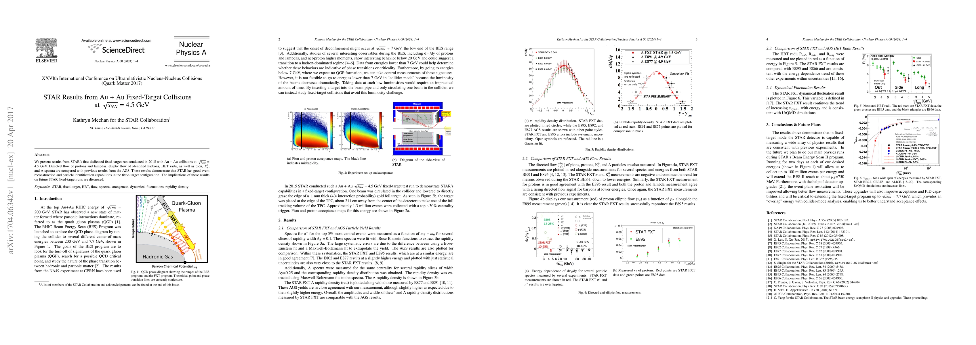 We present results from STAR's first dedicated fixed-target run conducted in 2015 with Au + Au collisions at sqrt(s_NN) = 4.5 GeV. Directed flow of protons and lambdas, elliptic flow of identified hadrons, HBT radii, as well as pion, K^0_s, and Lambda spectra are compared with previous results from the AGS. These results demonstrate that STAR has good event reconstruction and particle identification capabilities in the fixed-target configuration. The implications of these results on future STAR fixed-target runs are discussed.
