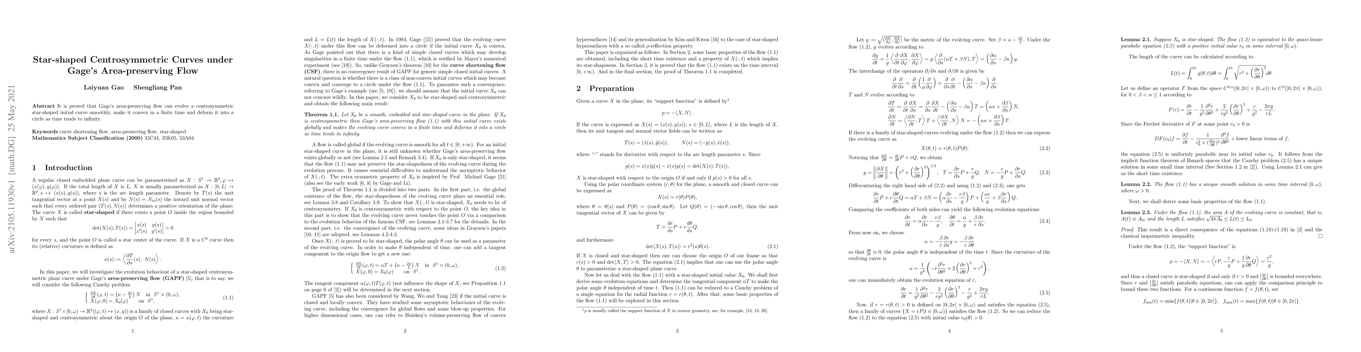 Gage's area-preserving flow can transform a star-shaped initial curve into a circle over time, making it convex and smooth within a finite timeframe.