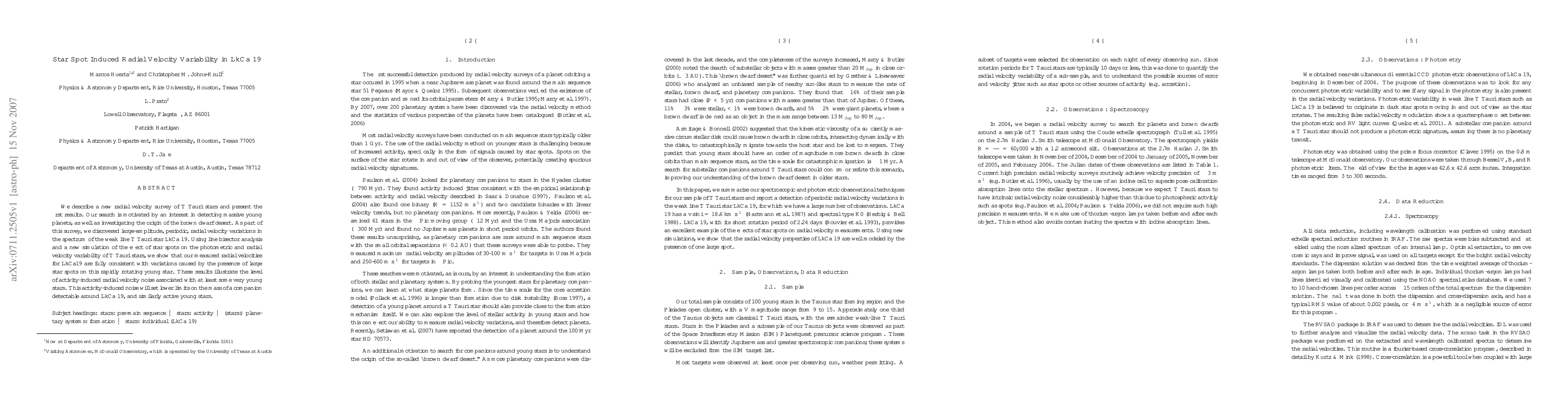 This paper reports large-amplitude, periodic radial velocity variations in the T Tauri star LkCa 19, attributed to the presence of large star spots rather than a massive planet. The findings highlight the activity-induced radial velocity noise in young stars, which limits the detection of companions.