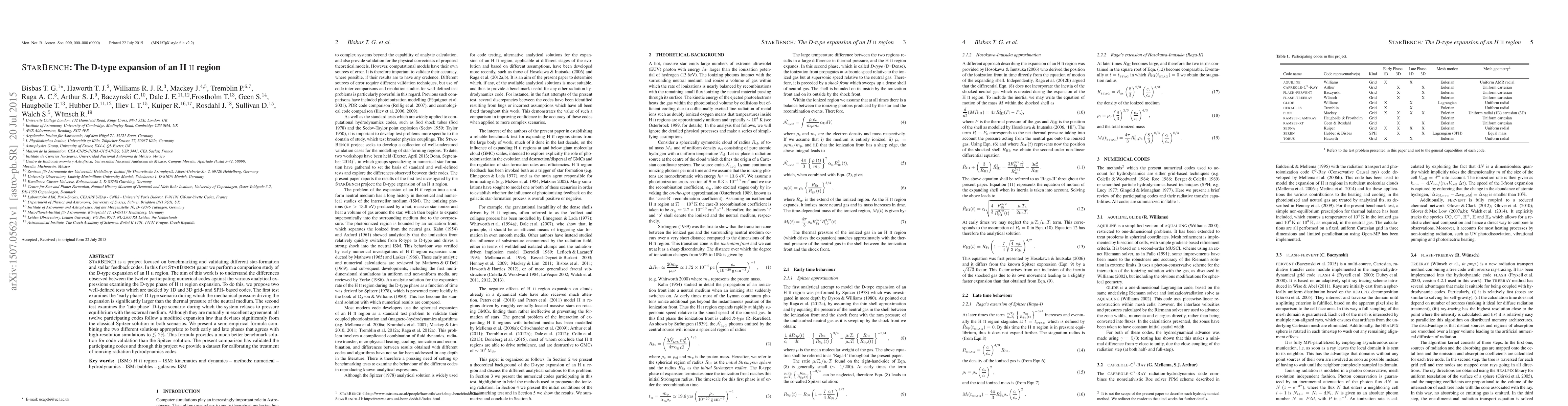 StarBench is a project focused on benchmarking and validating different star-formation and stellar feedback codes. In this first StarBench paper we perform a comparison study of the D-type expansion of an HII region. The aim of this work is to understand the differences observed between the twelve participating numerical codes against the various analytical expressions examining the D-type phase of HII region expansion. To do this, we propose two well-defined tests which are tackled by 1D and 3D grid- and SPH- based codes. The first test examines the `early phase' D-type scenario during which the mechanical pressure driving the expansion is significantly larger than the thermal pressure of the neutral medium. The second test examines the `late phase' D-type scenario during which the system relaxes to pressure equilibrium with the external medium. Although they are mutually in excellent agreement, all twelve participating codes follow a modified expansion law that deviates significantly from the classical Spitzer solution in both scenarios. We present a semi-empirical formula combining the two different solutions appropriate to both early and late phases that agrees with high-resolution simulations to $\lesssim2\%$. This formula provides a much better benchmark solution for code validation than the Spitzer solution. The present comparison has validated the participating codes and through this project we provide a dataset for calibrating the treatment of ionizing radiation hydrodynamics codes.