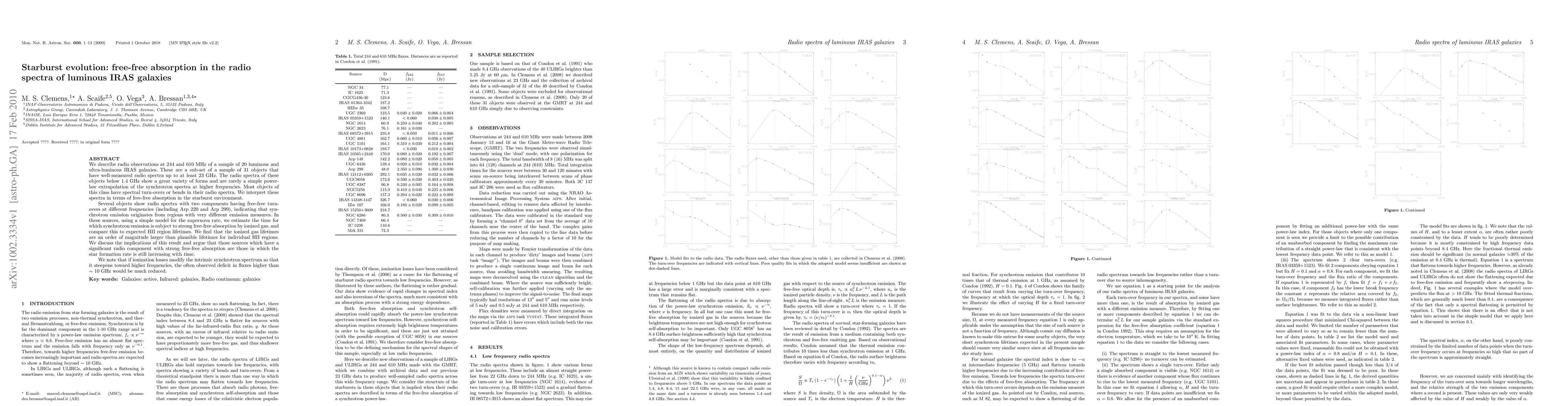 We describe radio observations at 244 and 610 MHz of a sample of 20 luminous and ultra-luminous IRAS galaxies. These are a sub-set of a sample of 31 objects that have well-measured radio spectra up to at least 23 GHz. The radio spectra of these objects below 1.4 GHz show a great variety of forms and are rarely a simple power-law extrapolation of the synchrotron spectra at higher frequencies. Most objects of this class have spectral turn-overs or bends in their radio spectra. We interpret these spectra in terms of free-free absorption in the starburst environment. Several objects show radio spectra with two components having free-free turn-overs at different frequencies (including Arp 220 and Arp 299), indicating that synchrotron emission originates from regions with very different emission measures. In these sources, using a simple model for the supernova rate, we estimate the time for which synchrotron emission is subject to strong free-free absorption by ionized gas, and compare this to expected HII region lifetimes. We find that the ionized gas lifetimes are an order of magnitude larger than plausible lifetimes for individual HII regions. We discuss the implications of this result and argue that those sources which have a significant radio component with strong free-free absorption are those in which the star formation rate is still increasing with time. We note that if ionization losses modify the intrinsic synchrotron spectrum so that it steepens toward higher frequencies, the often observed deficit in fluxes higher than ~10 GHz would be much reduced.