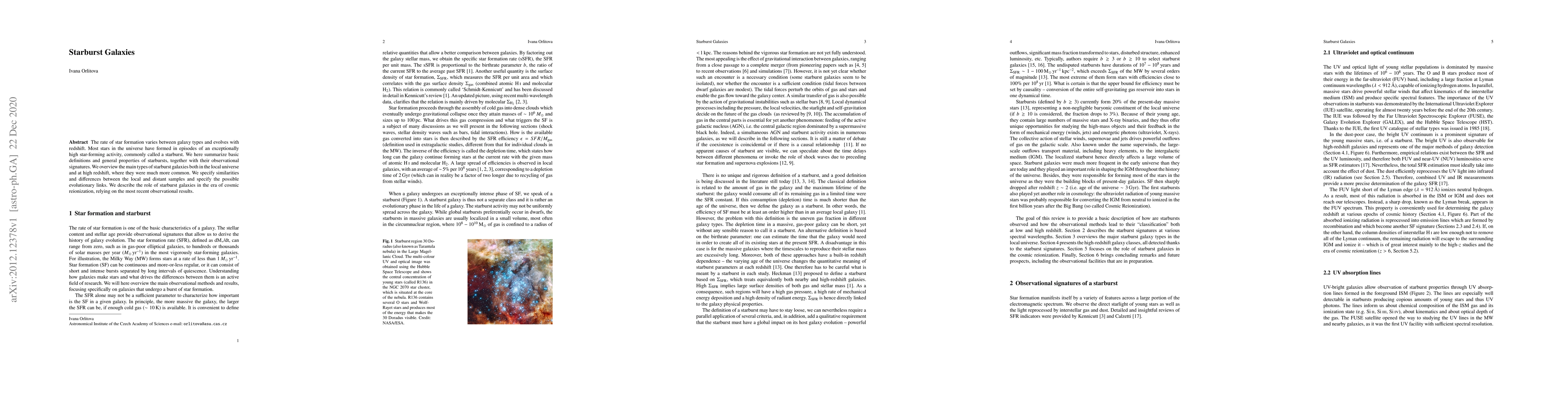 This paper summarizes the fundamental characteristics and observational signatures of starburst galaxies, comparing their prevalence in the local universe and at high redshifts, and discusses their role in cosmic reionization based on the latest observational data. It also explores the evolutionary connections between starburst galaxies across different cosmic epochs.
