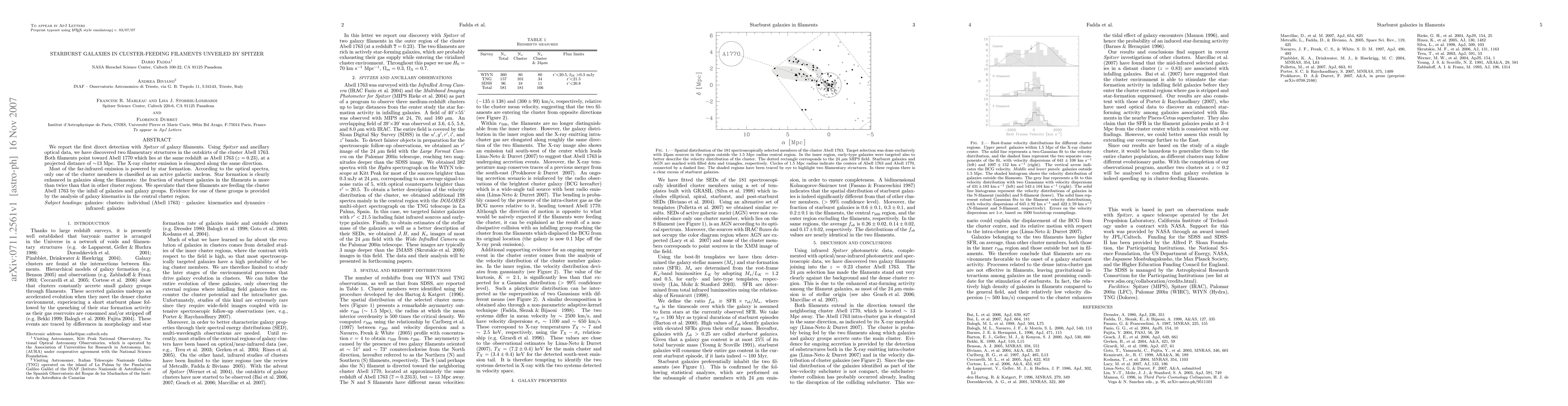 This study reports the first direct detection of galaxy filaments using Spitzer, revealing two filamentary structures in the outskirts of cluster Abell 1763. These filaments show enhanced star formation, suggesting they may be feeding galaxies into the cluster.