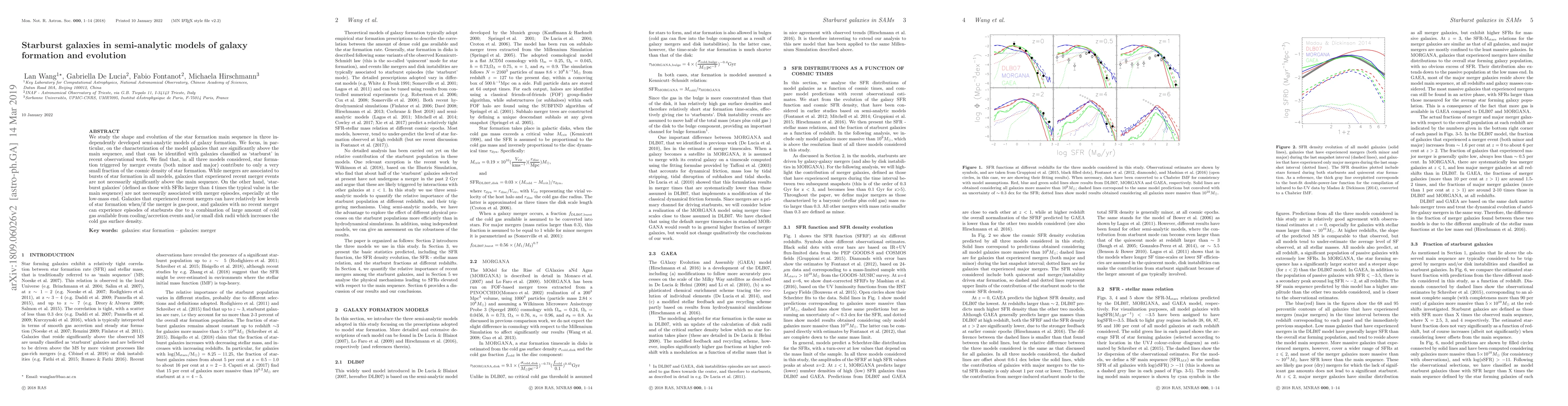 This paper examines the star formation main sequence in three semi-analytic models of galaxy formation, finding that starburst galaxies are not solely driven by merger events. While mergers trigger bursts, they do not always result in galaxies significantly above the main sequence, especially if gas-poor, and starbursts can also occur due to large cold gas reserves or small disk radii.