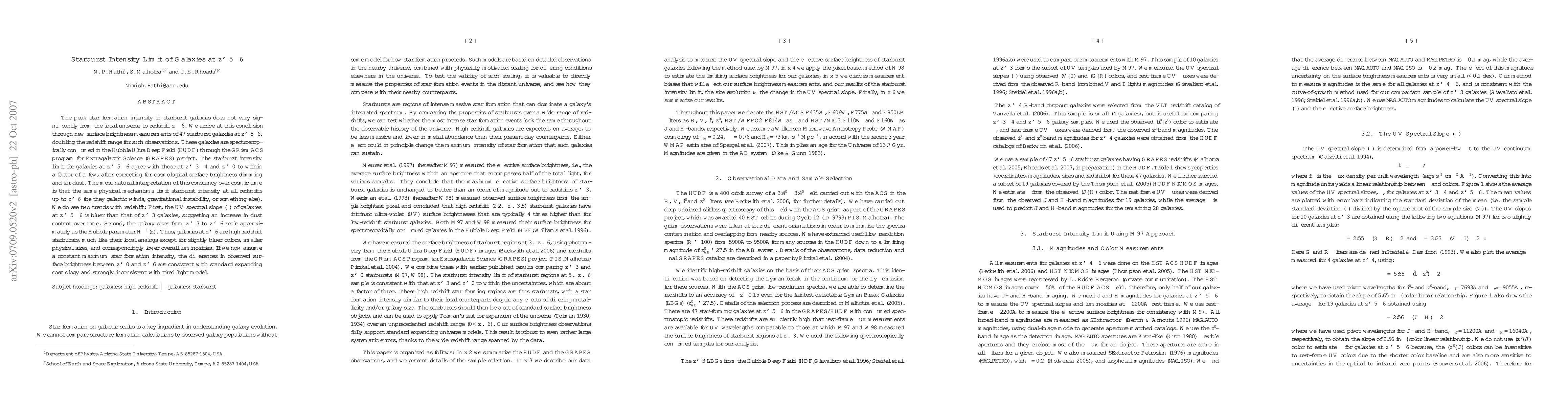 The peak star formation intensity in starburst galaxies does not vary significantly from the local universe to redshift z~6. We arrive at this conclusion through new surface brightness measurements of 47 starburst galaxies at z~5-6, doubling the redshift range for such observations. These galaxies are spectroscopically confirmed in the Hubble Ultra Deep Field (HUDF) through the GRism ACS program for Extragalactic Science (GRAPES) project. The starburst intensity limit for galaxies at z~5-6 agree with those at z~3-4 and z~0 to within a factor of a few, after correcting for cosmological surface brightness dimming and for dust. The most natural interpretation of this constancy over cosmic time is that the same physical mechanisms limit starburst intensity at all redshifts up to z~6 (be they galactic winds, gravitational instability, or something else). We do see two trends with redshift: First, the UV spectral slope of galaxies at z~5-6 is bluer than that of z~3 galaxies, suggesting an increase in dust content over time. Second, the galaxy sizes from z~3 to z~6 scale approximately as the Hubble parameter 1/H(z). Thus, galaxies at z~6 are high redshift starbursts, much like their local analogs except for slightly bluer colors, smaller physical sizes, and correspondingly lower overall luminosities. If we now assume a constant maximum star formation intensity, the differences in observed surface brightness between z~0 and z~6 are consistent with standard expanding cosmology and strongly inconsistent with tired light model.