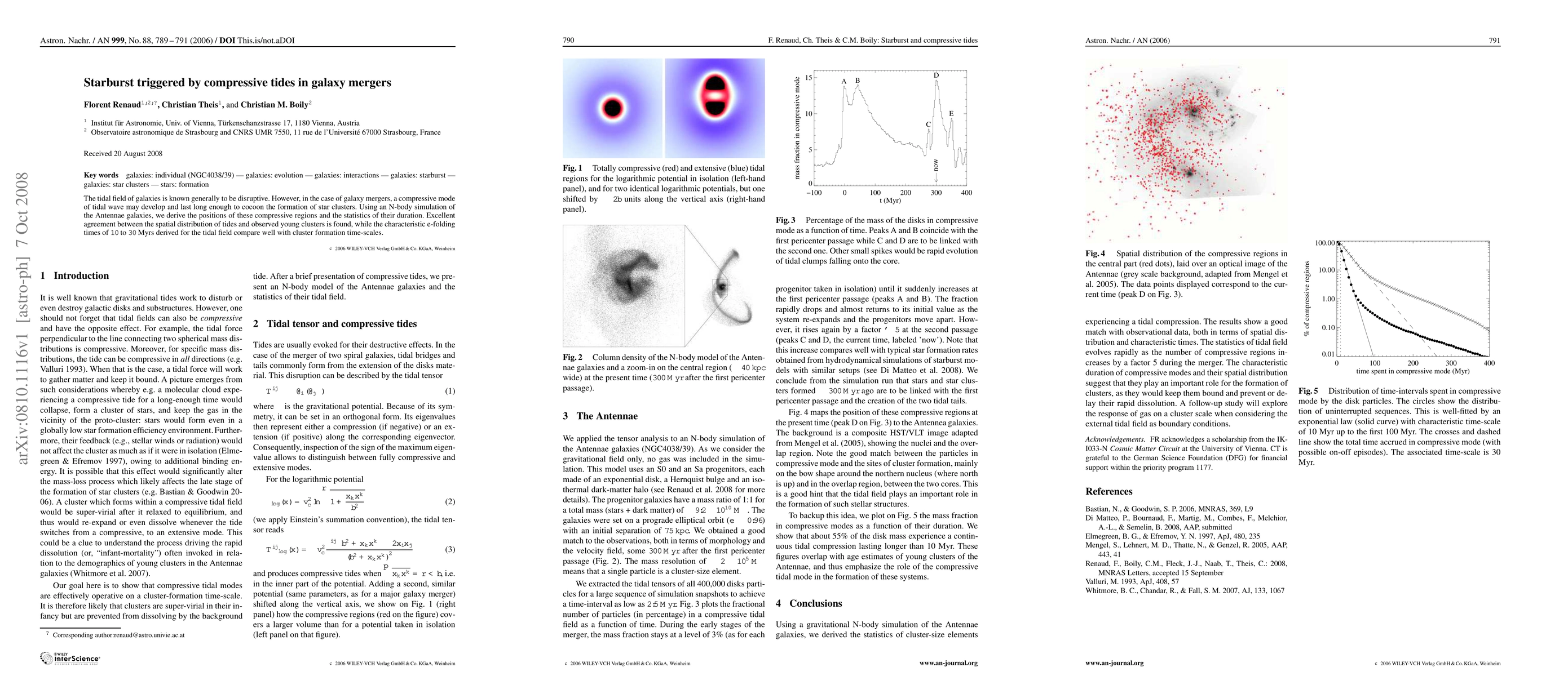 This study demonstrates that compressive tidal waves during galaxy mergers can trigger star formation, leading to the development of star clusters. N-body simulations of the Antennae galaxies reveal the spatial distribution and duration of these tidal regions, showing strong correlation with observed young clusters and characteristic timescales of 10 to 30 Myrs.