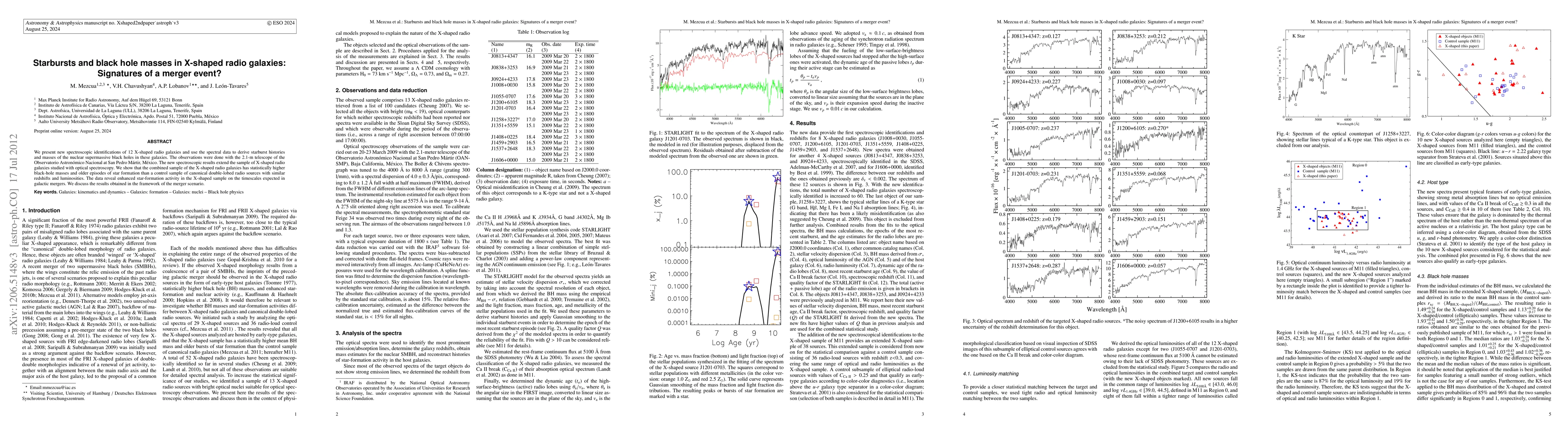 This paper identifies 12 X-shaped radio galaxies using new spectroscopic data, revealing higher black-hole masses and older starburst histories compared to control samples. The enhanced star-formation activity suggests a merger event as the underlying cause.