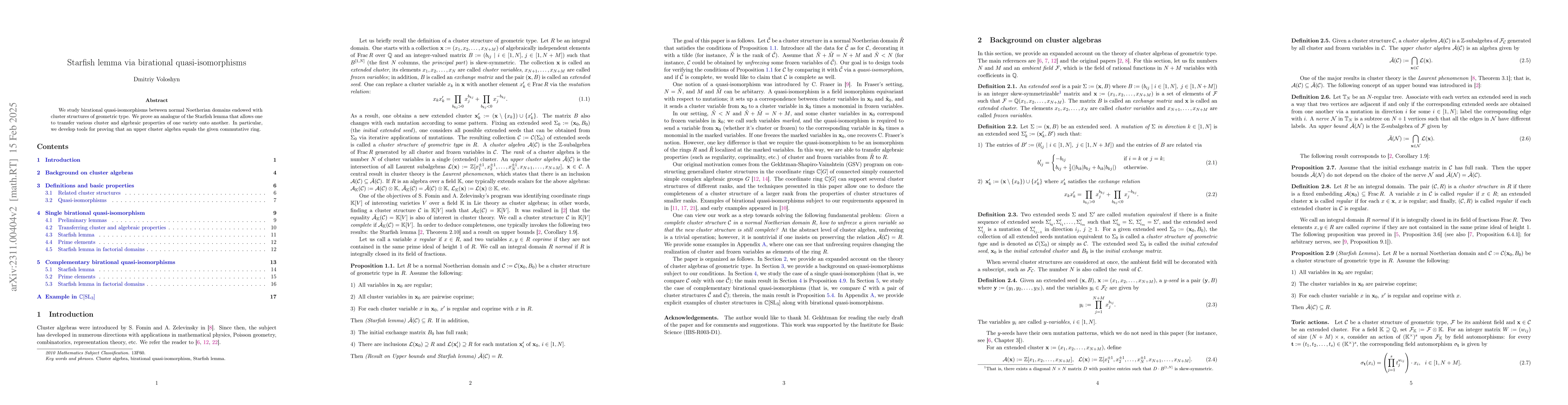 We introduce the notion of a birational quasi-isomorphism between cluster structures of geometric type in normal Noetherian domains, and we provide a new formulation of the Starfish lemma in the case birational quasi-isomorphisms are available.