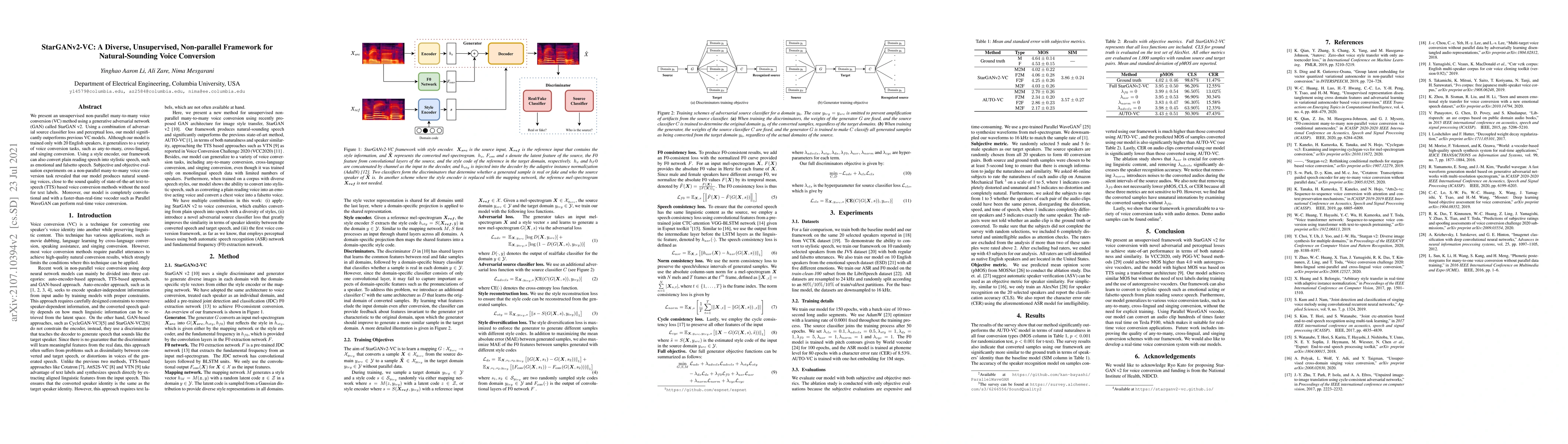 StarGAN v2-VC presents an unsupervised, non-parallel voice conversion method using a GAN that outperforms previous models through adversarial and perceptual losses. The model generalizes well across various voice conversion tasks and can convert reading speech to stylistic speech, achieving natural-sounding results without text labels.