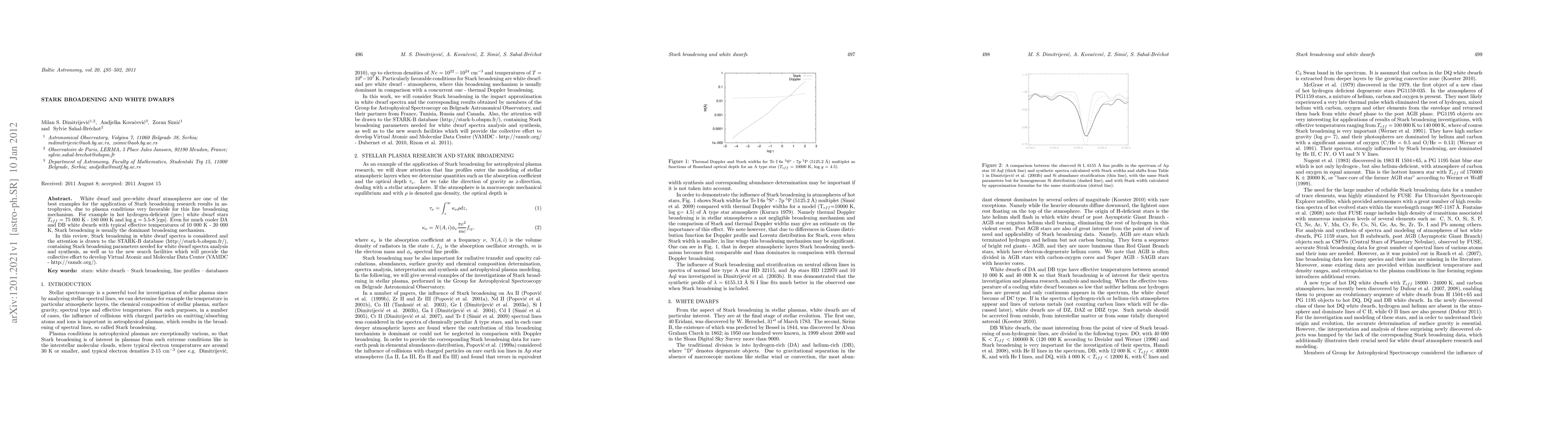Stark broadening research focuses on white dwarf atmospheres, providing valuable insights into astrophysics due to favorable plasma conditions. A database and new search facilities aid in analyzing and synthesizing spectra.