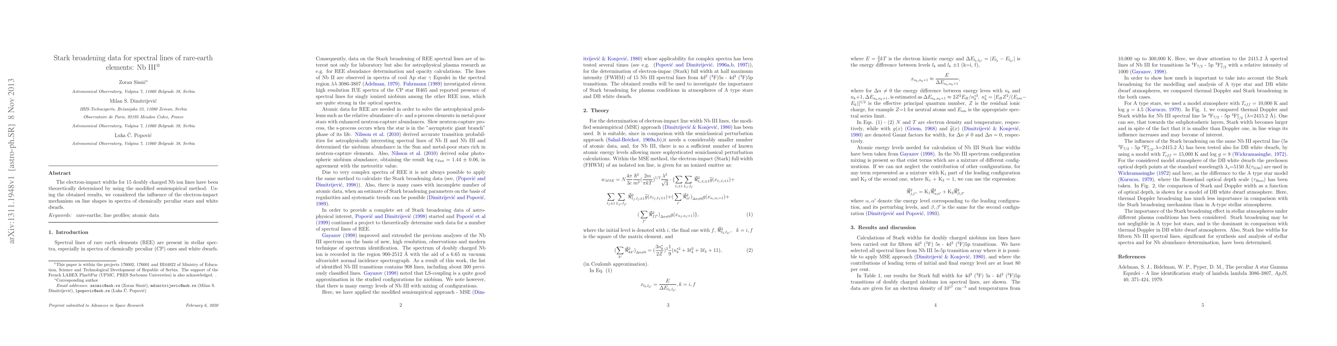 The electron-impact widths for 15 doubly charged Nb ion lines have been theoretically determined by using the modified semiempirical method. Using the obtained results, we considered the influence of the electron-impact mechanism on line shapes in spectra of chemically peculiar stars and white dwarfs.