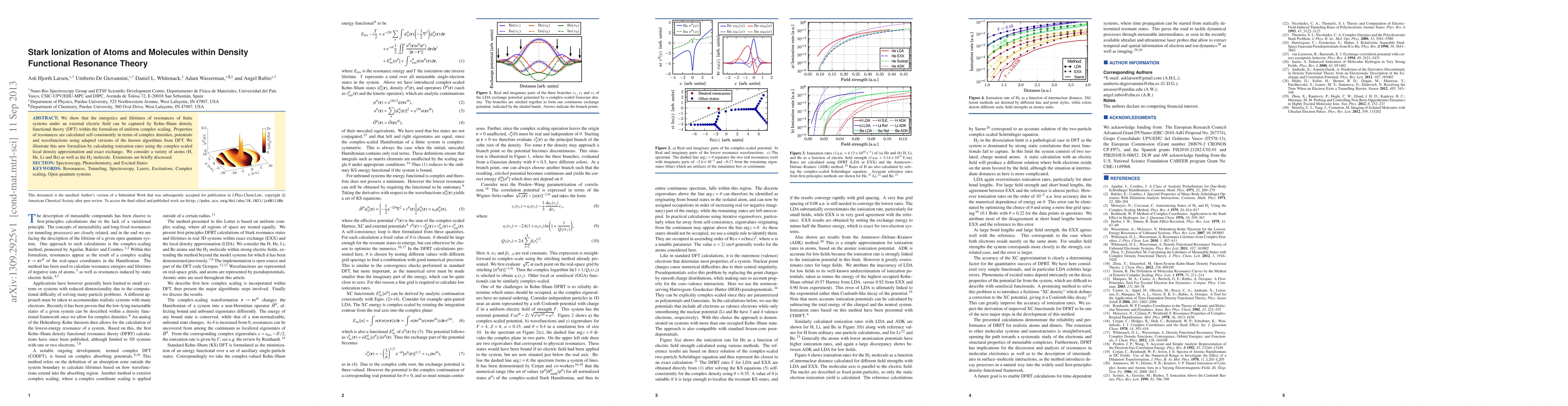 This paper demonstrates that Kohn-Sham density functional theory (DFT) can accurately model the energetics and lifetimes of atomic and molecular resonances under an external electric field using uniform complex scaling. The study calculates ionization rates for various atoms and the hydrogen molecule using adapted DFT algorithms.