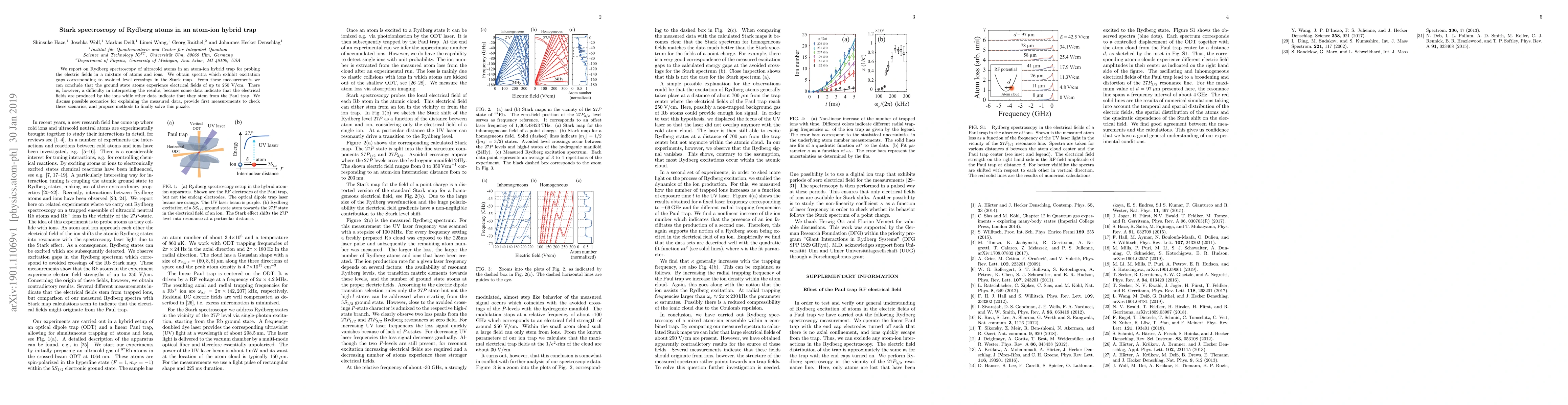 This paper reports on Rydberg spectroscopy of ultracold atoms in an atom-ion hybrid trap, revealing excitation gaps due to Stark effects and indicating ground state atoms experience fields up to 250 V/cm. The study faces interpretation challenges regarding the source of these fields, proposing methods to resolve this ambiguity.