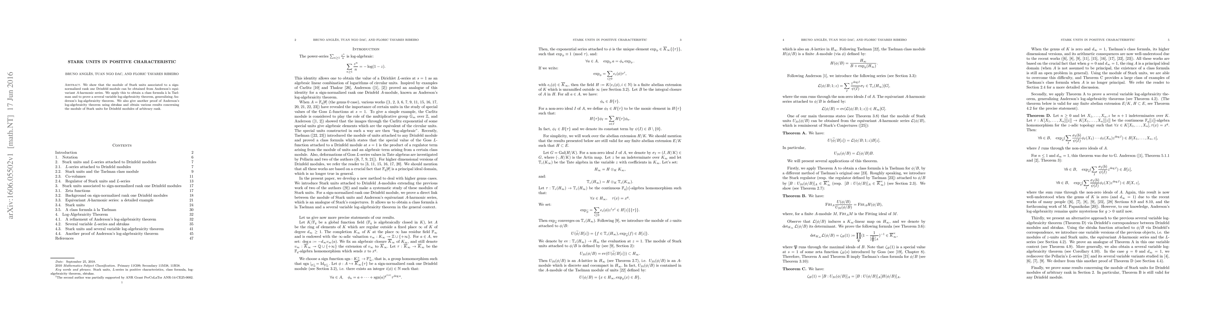 Researchers connect Anderson's $A$-harmonic series to Stark units in positive characteristic, enabling a class formula and proving log-algebraicity theorems for Drinfeld modules.