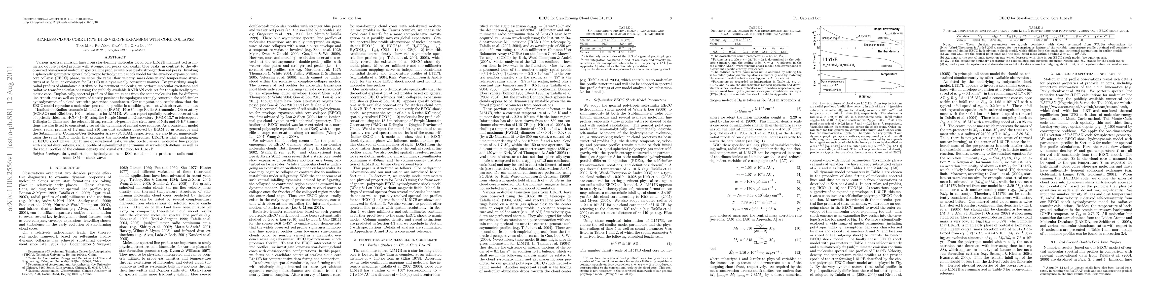 This paper investigates the star-forming molecular cloud core L1517B, revealing unusual red-peaked spectral emission lines. The authors propose a spherically symmetric hydrodynamic shock model for the envelope expansion with core collapse (EECC) phase, which successfully reproduces observed molecular spectral line profiles and dust continuum data.