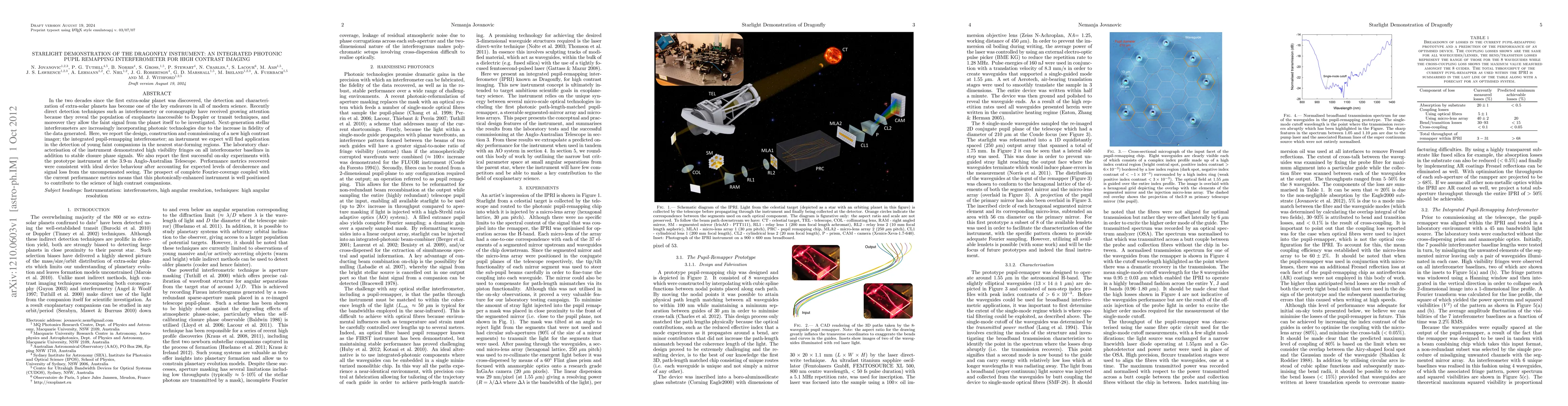 This paper details the development and initial testing of the Dragonfly Instrument, a photonic pupil remapping interferometer designed for high-contrast imaging to detect faint exoplanets. Initial on-sky experiments at the Anglo-Australian Telescope showed promising results, with performance metrics aligning closely with theoretical expectations despite atmospheric disturbances.