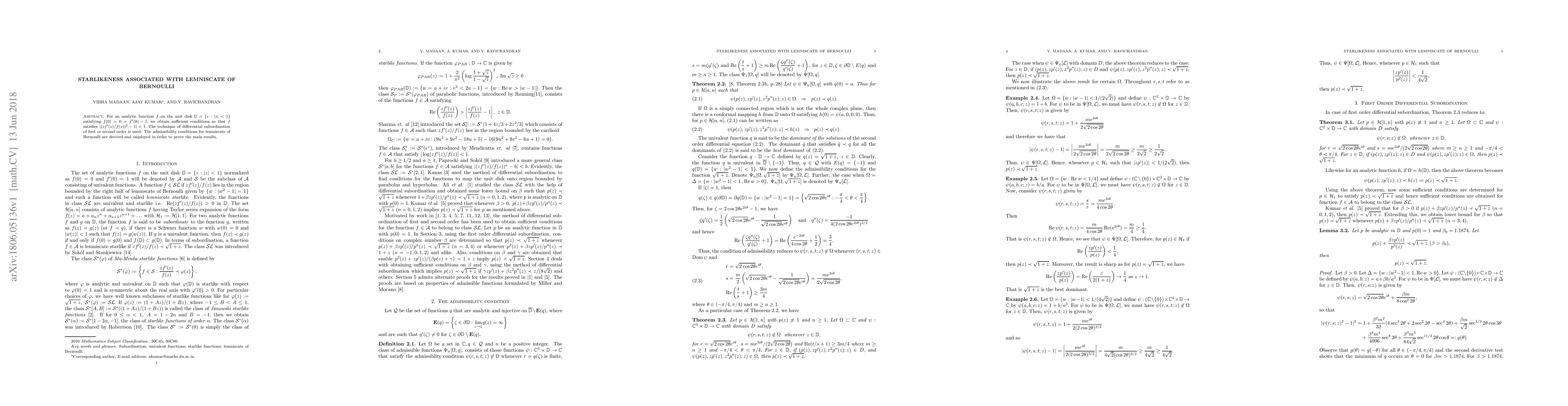 For an analytic function $f$ on the unit disk $\mathbb{D}=\{z:|z|<1\}$ satisfying $f(0)=0=f'(0)-1,$ we obtain sufficient conditions so that $f$ satisfies $|(zf'(z)/f(z))^2-1|<1.$ The technique of differential subordination of first or second order is used. The admissibility conditions for lemniscate of Bernoulli are derived and employed in order to prove the main results.