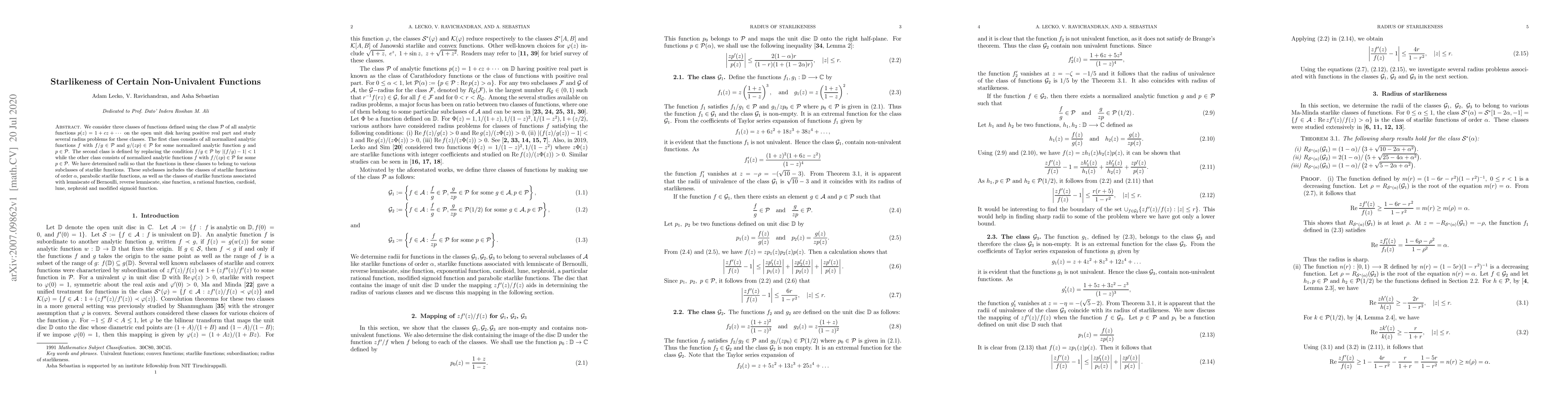The research provided a novel approach to analyzing the starlikeness of certain non-univalent functions using the class \mathcal{P} of all analytic functions.