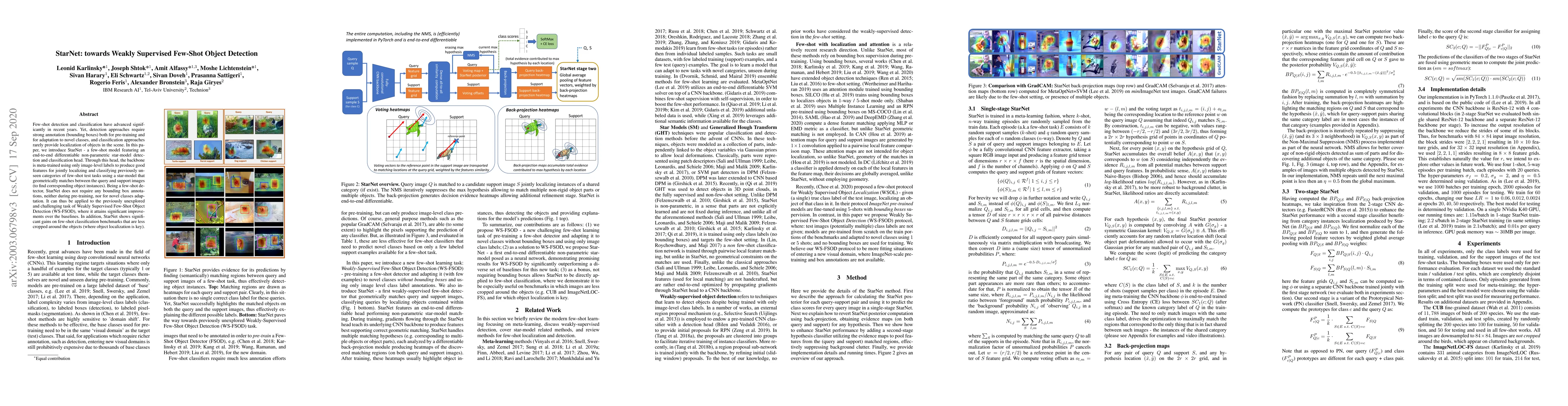 StarNet introduces a novel few-shot detection method that leverages an end-to-end differentiable star-model head for weakly supervised few-shot object detection, requiring no bounding box annotations, and significantly outperforms baselines in this challenging task. It also demonstrates improvements in few-shot classification where object localization is crucial.