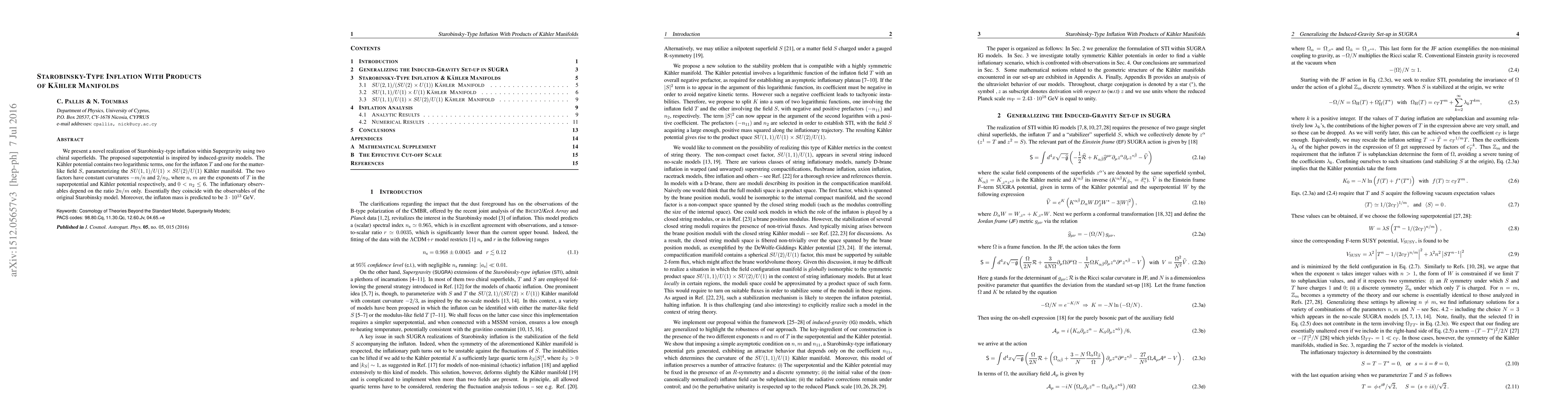 logarithmic terms, one for the inflaton T and one for the matter-like field S,