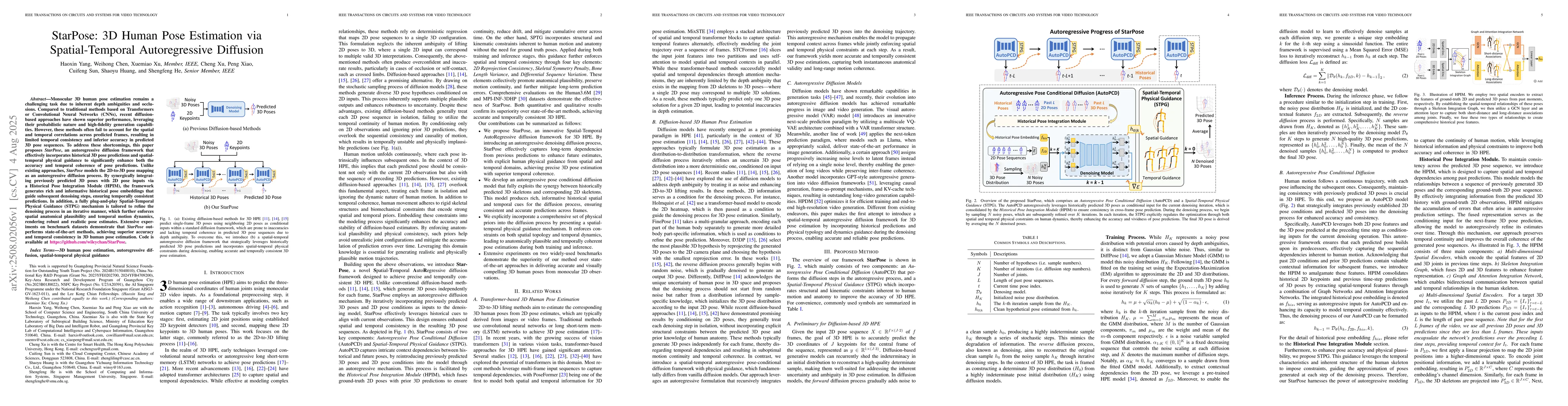 Monocular 3D human pose estimation remains a challenging task due to inherent depth ambiguities and occlusions. Compared to traditional methods based on Transformers or Convolutional Neural Networks (CNNs), recent diffusion-based approaches have shown superior performance, leveraging their probabilistic nature and high-fidelity generation capabilities. However, these methods often fail to account for the spatial and temporal correlations across predicted frames, resulting in limited temporal consistency and inferior accuracy in predicted 3D pose sequences. To address these shortcomings, this paper proposes StarPose, an autoregressive diffusion framework that effectively incorporates historical 3D pose predictions and spatial-temporal physical guidance to significantly enhance both the accuracy and temporal coherence of pose predictions. Unlike existing approaches, StarPose models the 2D-to-3D pose mapping as an autoregressive diffusion process. By synergically integrating previously predicted 3D poses with 2D pose inputs via a Historical Pose Integration Module (HPIM), the framework generates rich and informative historical pose embeddings that guide subsequent denoising steps, ensuring temporally consistent predictions. In addition, a fully plug-and-play Spatial-Temporal Physical Guidance (STPG) mechanism is tailored to refine the denoising process in an iterative manner, which further enforces spatial anatomical plausibility and temporal motion dynamics, rendering robust and realistic pose estimates. Extensive experiments on benchmark datasets demonstrate that StarPose outperforms state-of-the-art methods, achieving superior accuracy and temporal consistency in 3D human pose estimation. Code is available at https://github.com/wileychan/StarPose.