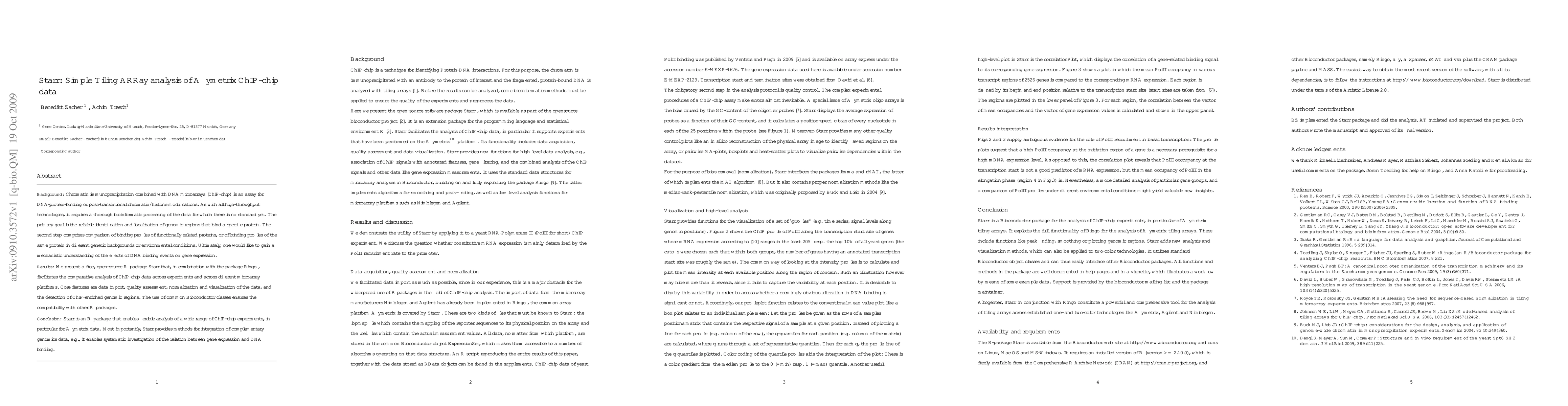 A new R package called Starr facilitates the comparative analysis of ChIP-chip data to identify genomic regions bound by specific proteins, enabling a mechanistic understanding of DNA binding events on gene expression.