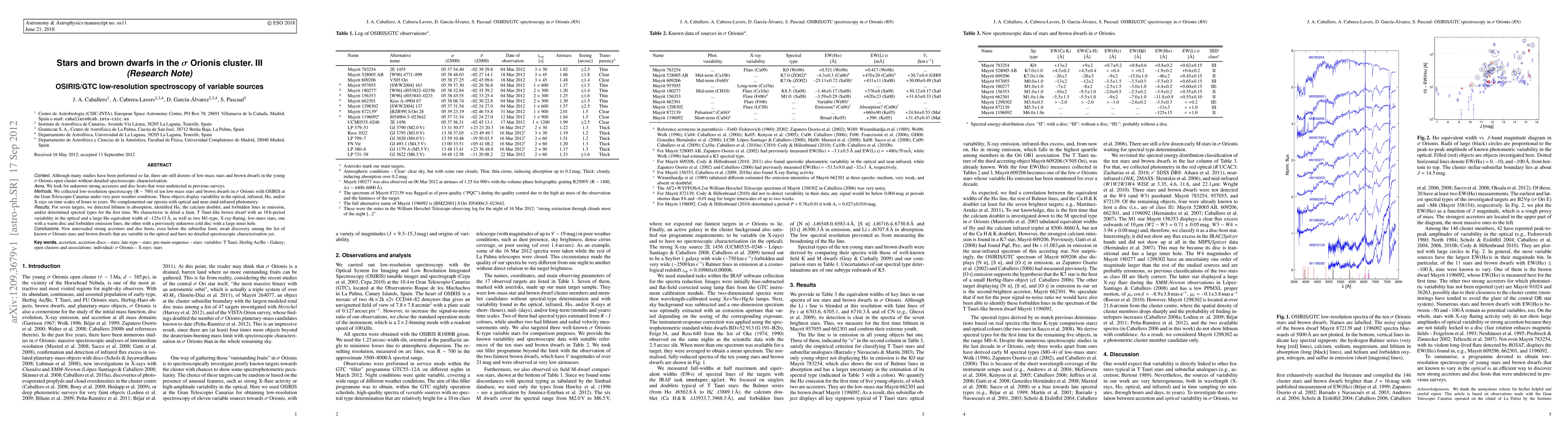 This study uses OSIRIS/GTC low-resolution spectroscopy to characterize ten variable low-mass stars and brown dwarfs in the sigma Orionis cluster, revealing new strong accretors and disc hosts. The research identified lithium, Halpha, and calcium doublets, and detailed spectral types for seven targets, including a T Tauri-like brown dwarf and two X-ray-flaring low-mass stars with distinct disc characteristics.